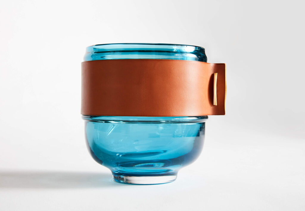 A travers ses derniers projets, Caroline Scholl expérimente ce matériau de prédilection qu’est pour elle le verre. Elle l’intègre alors dans de surprenantes associations, de la porcelaine au métal en passant par le cuir, développant ainsi une vision riche et inventive des métiers d’arts.