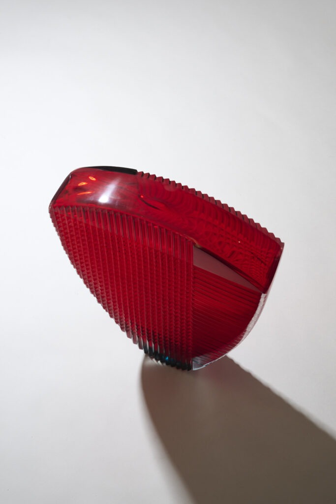 Sculpture EN VERRE SOUFFLÉ ET TAILLÉ À LA ROUE, INTITULÉE « Crosscut weft».