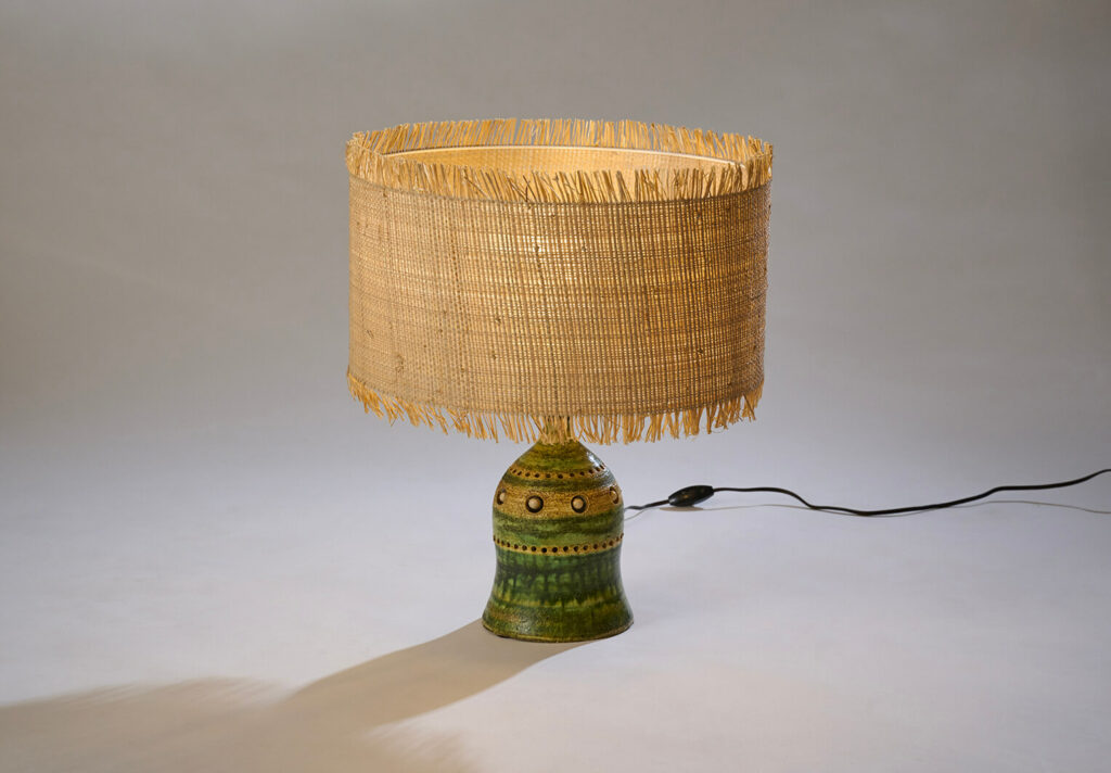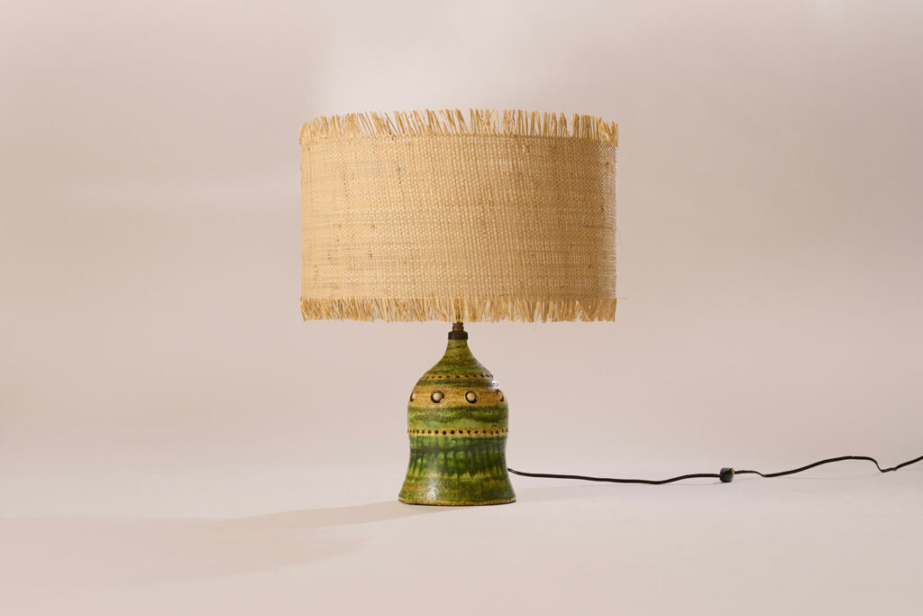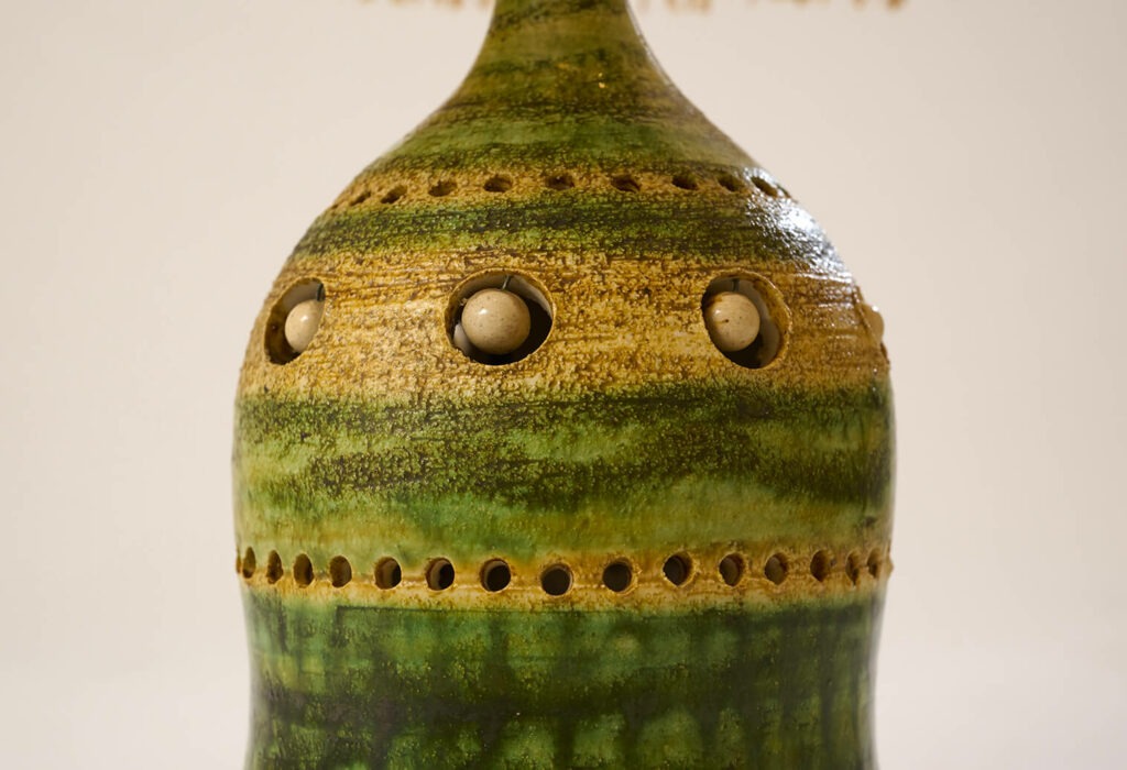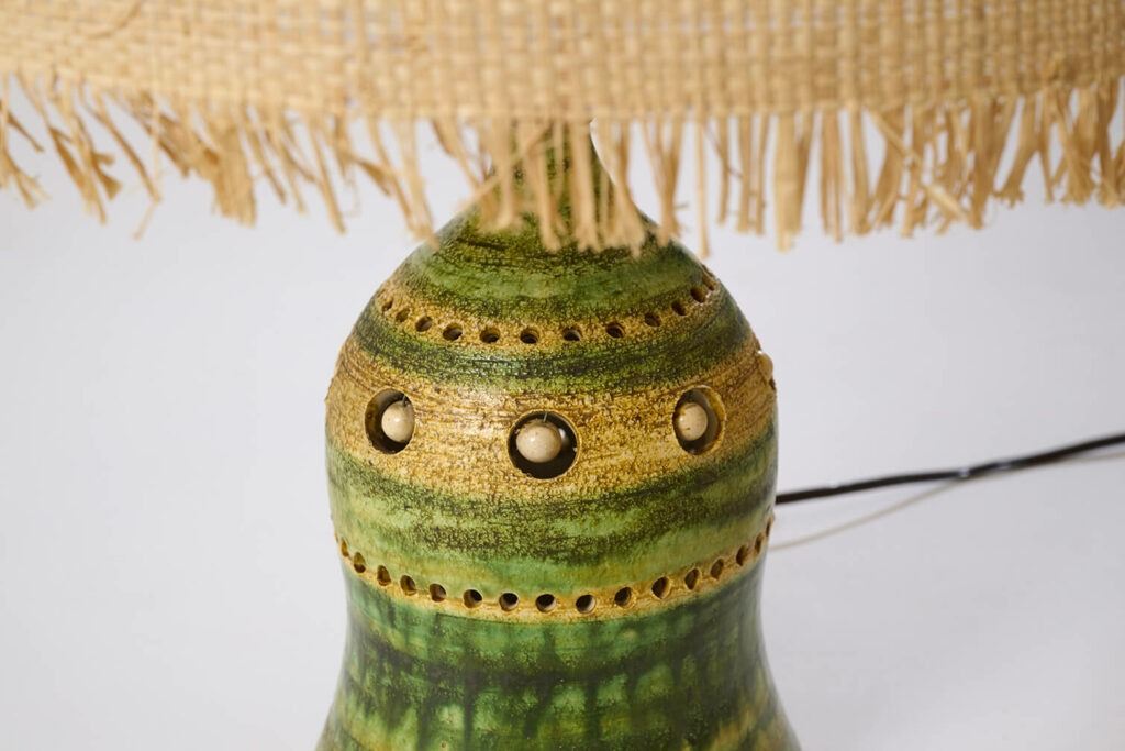 Lampe en faïence ajourée, émaillée dans les tons vert et jaune.