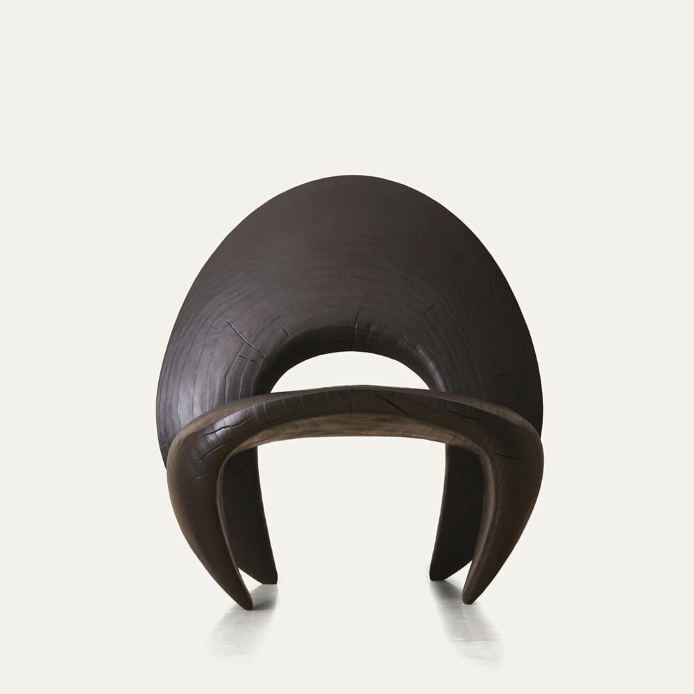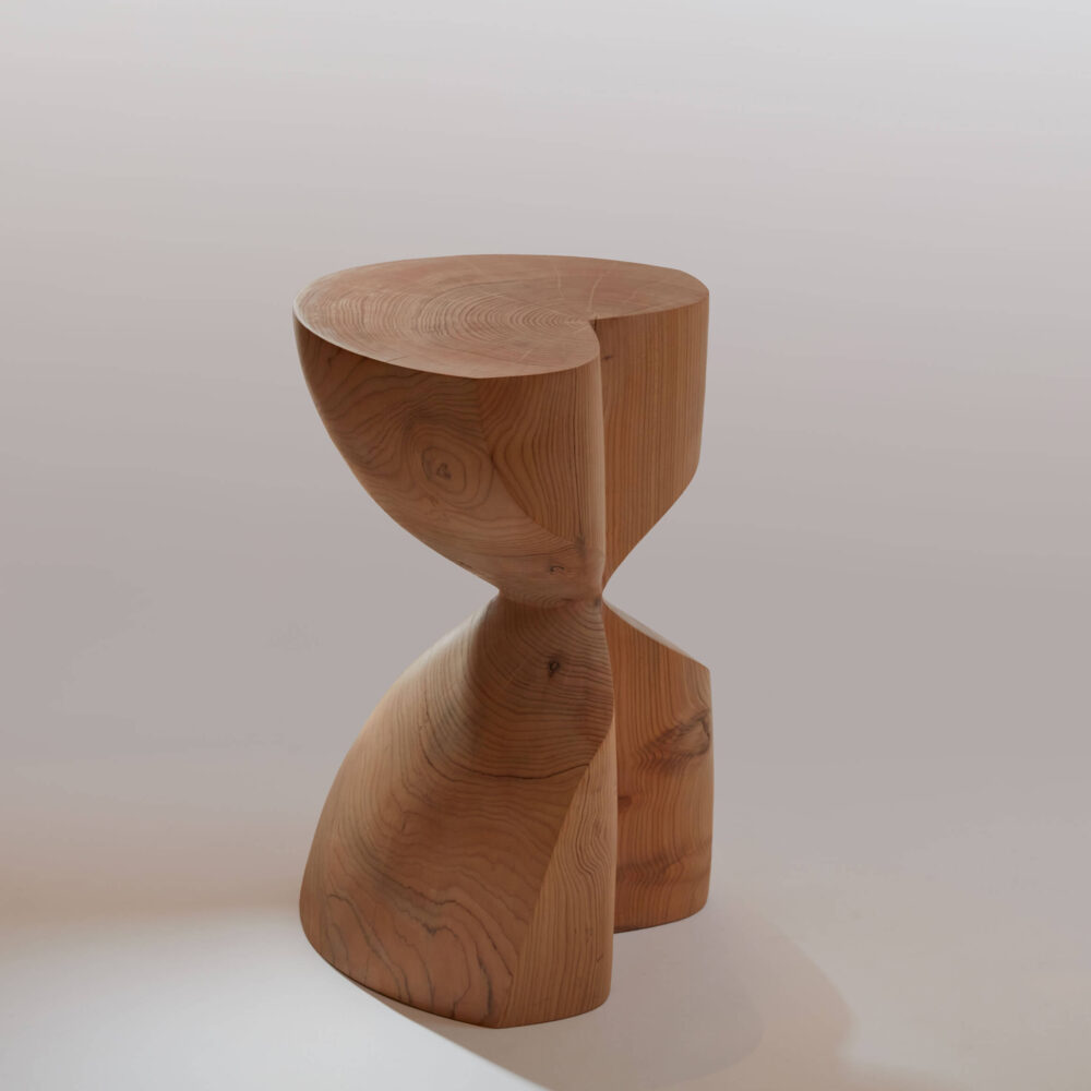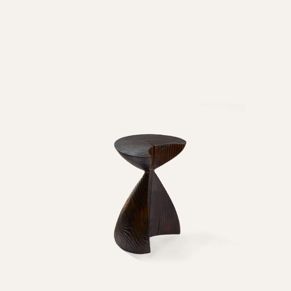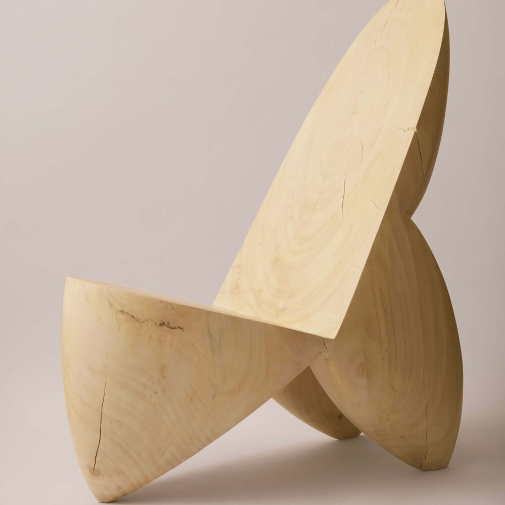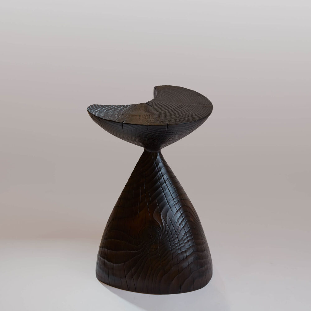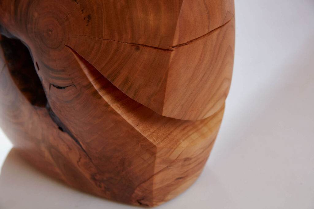 C’est au pied des Pyrénées, au cœur d’un paysage de bois et de forêt que Romain Paris Garnault installe son atelier en 2022. Il y sculpte des meubles et des objets uniques façonnés en taille directe dans des sections de tronc d’arbres , cherchant avant tout à créer des sculptures à vivre, entre artisanat, art et design, magnifiant en toute sensualité la nature même de la matière. Les bois utilisés sont la plupart du temps des bois locaux récupérés et choisis avec soin et éthique, ils sont issus d’élagage. Romain est autodidacte, son processus créatif est intuitif et laisse toute sa place à la sérendipité. L’objet se dessine au fur et à mesure, en compromis entre les fissures et les nœuds qui animent le bois, la fonctionnalité et la volonté de sublimer le motif de veinage unique à chaque tronc, donnant ainsi à voir la « beauté intérieure » d’un arbre dans toute son individualité.