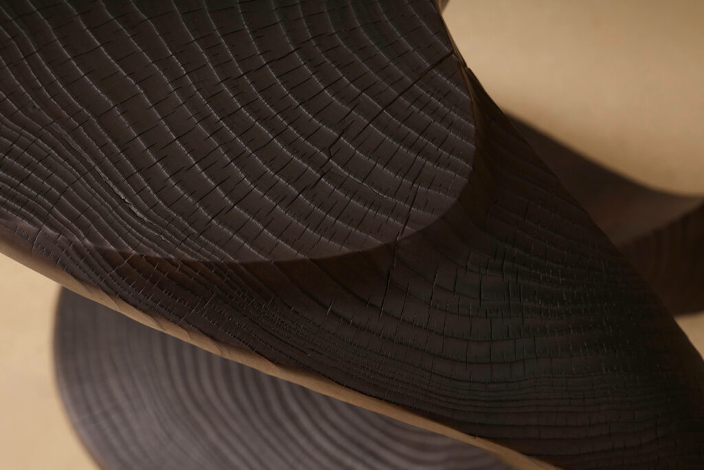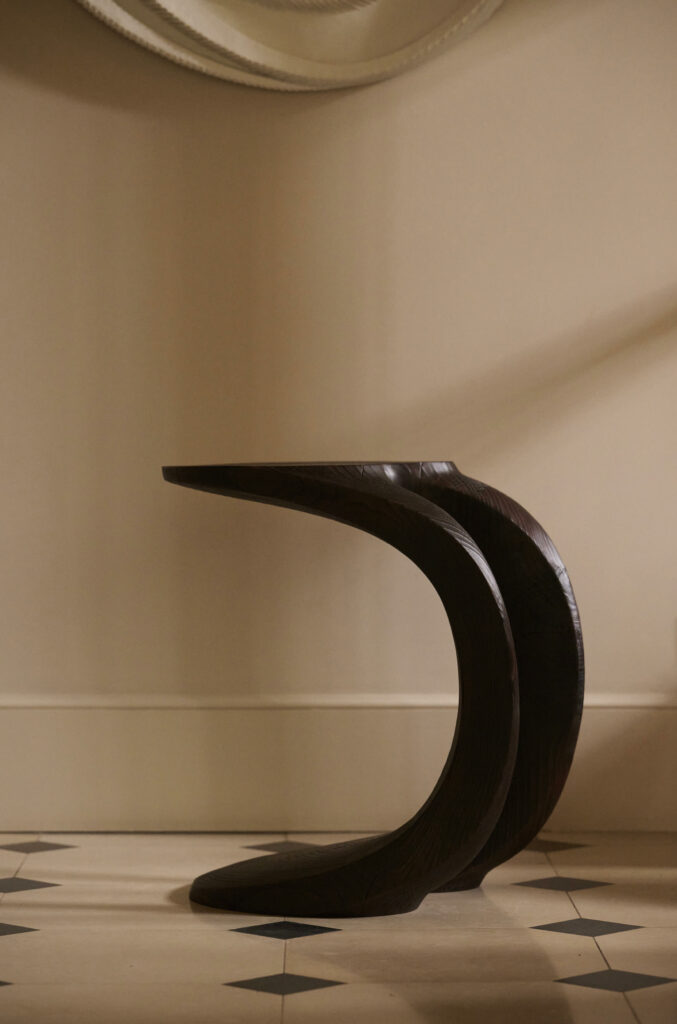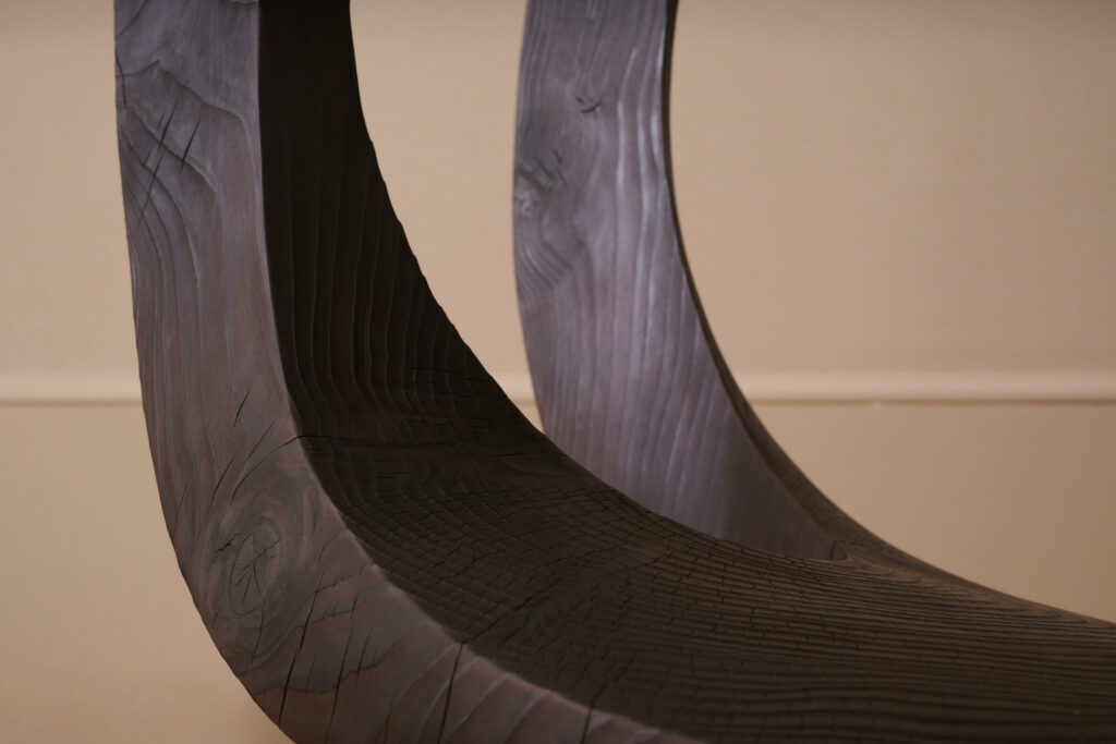 C’est au pied des Pyrénées, au cœur d’un paysage de bois et de forêt que Romain Paris Garnault installe son atelier en 2022. Il y sculpte des meubles et des objets uniques façonnés en taille directe dans des sections de tronc d’arbres , cherchant avant tout à créer des sculptures à vivre, entre artisanat, art et design, magnifiant en toute sensualité la nature même de la matière. Les bois utilisés sont la plupart du temps des bois locaux récupérés et choisis avec soin et éthique, ils sont issus d’élagage. Romain est autodidacte, son processus créatif est intuitif et laisse toute sa place à la sérendipité. L’objet se dessine au fur et à mesure, en compromis entre les fissures et les nœuds qui animent le bois, la fonctionnalité et la volonté de sublimer le motif de veinage unique à chaque tronc, donnant ainsi à voir la « beauté intérieure » d’un arbre dans toute son individualité.