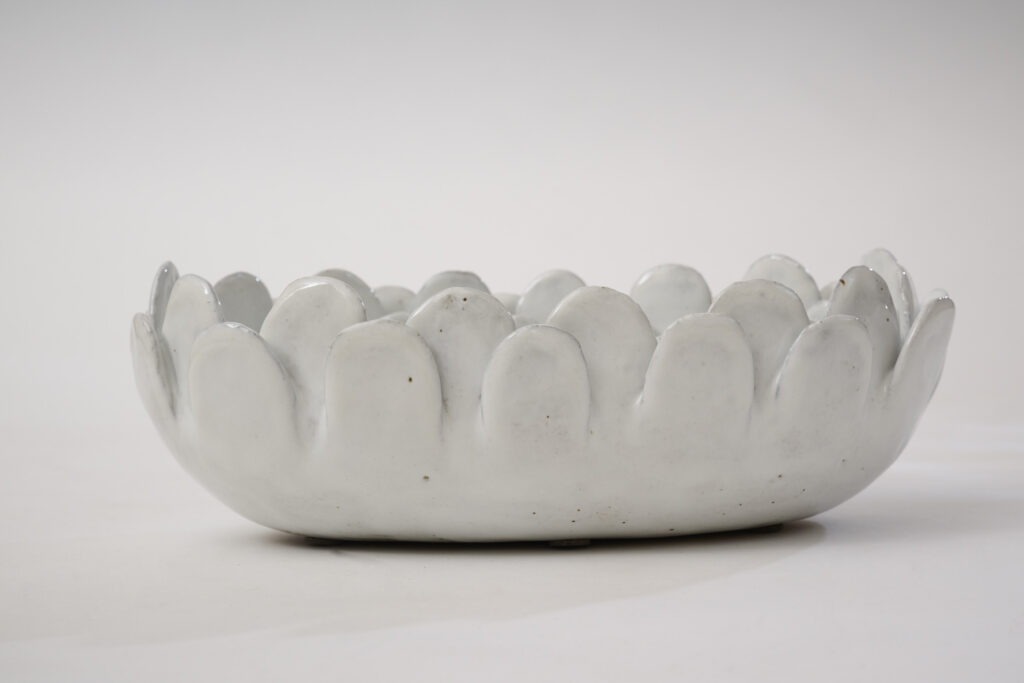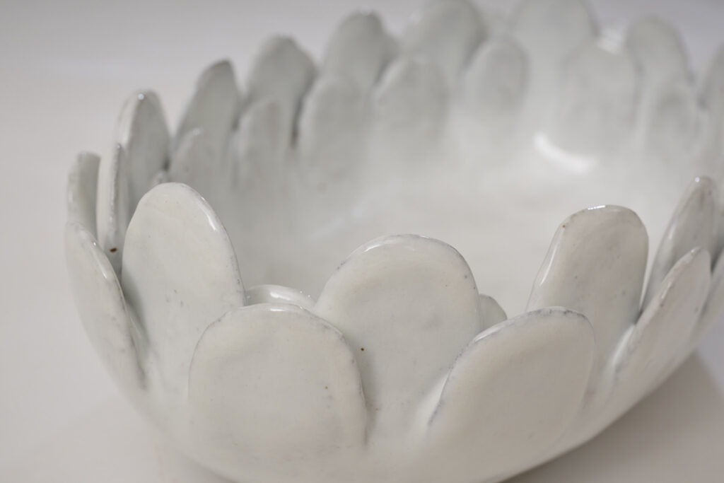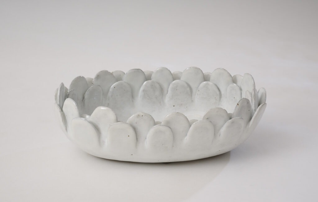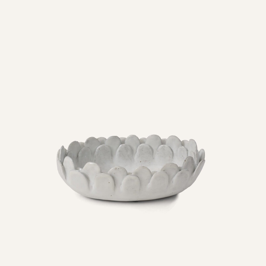 Plat en céramique émaillée blanche, intitulé » Petal Dish ».