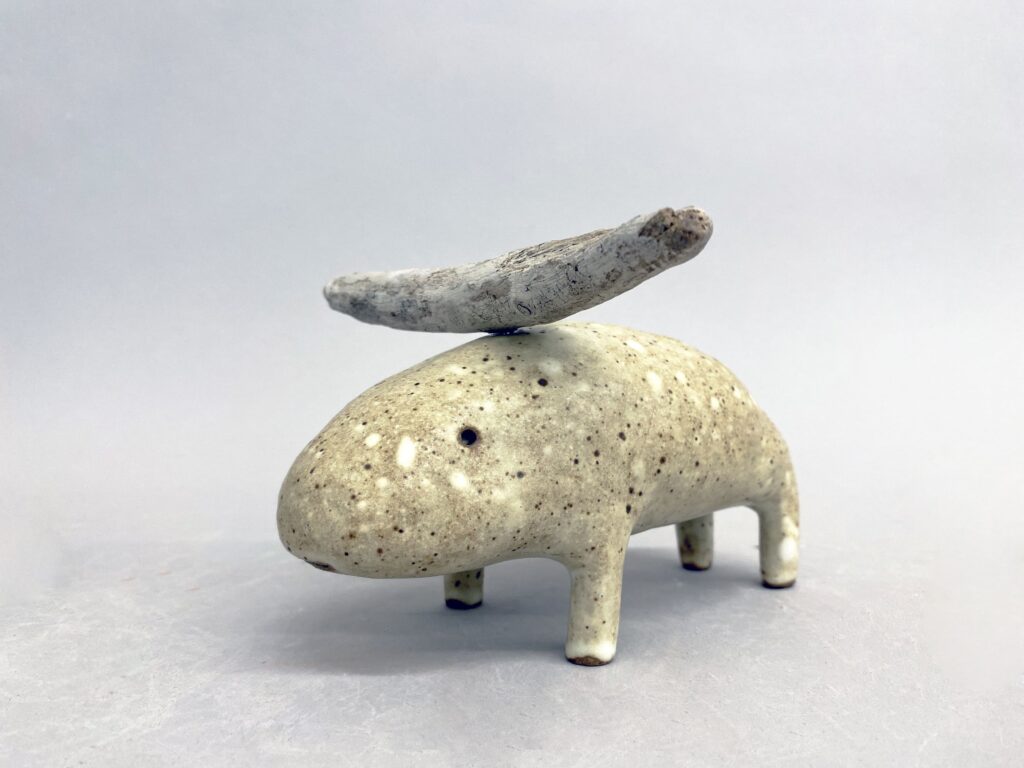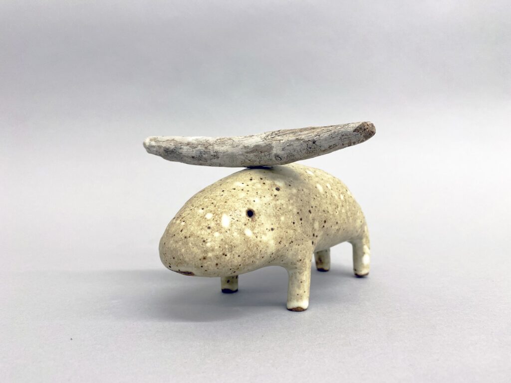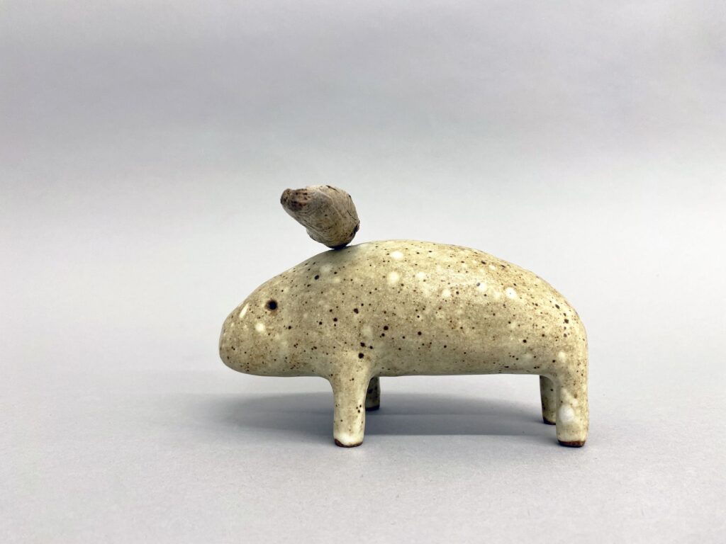 Born in 1968 in Lille France, Godeleine de Rosamel lives and works in Los Angeles. After graduating from ERG (Ecole de Recherche graphique) in Brussel, she worked as a painter and illustrator for 10 years in Paris. Since moving in 2011 in Los Angeles, she started working with ceramics full time and is currently collaborating with several galleries in the US. She likes that her work let her play first at being the original creator of imaginary life forms and then at enacting the evolutionary process by which they struggle to adapt and perfect themselves. After spending so much time watching how the animals were growing and evolving, she realized that it was time to give them their own biotope of plants and trees, that hopefully will develop and mature in relationship with them. Creating the plants proves as complicated as creating the animals. Of course, all life forms are sophisticated and there is no reason for the vegetal kingdom to be any easier to imagine and create than the animal one. This new development in her work follows Godeleine’s interest in natural history, evolution and the wonders of Nature in general.