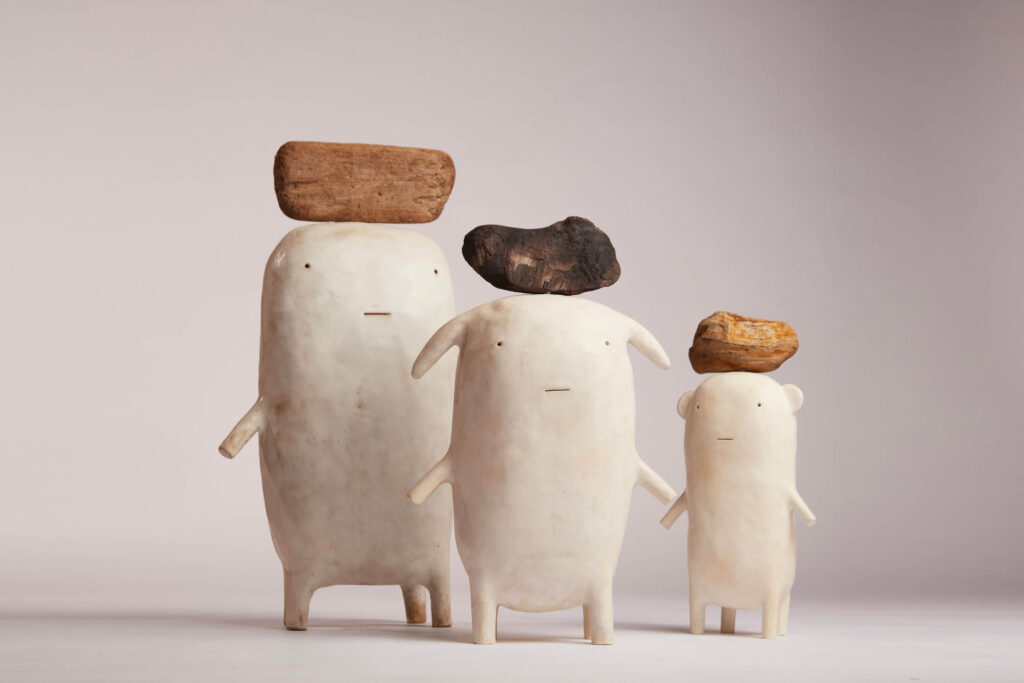Born in 1968 in Lille France, Godeleine de Rosamel lives and works in Los Angeles. After graduating from ERG (Ecole de Recherche graphique) in Brussel, she worked as a painter and illustrator for 10 years in Paris. Since moving in 2011 in Los Angeles, she started working with ceramics full time and is currently collaborating with several galleries in the US. She likes that her work let her play first at being the original creator of imaginary life forms and then at enacting the evolutionary process by which they struggle to adapt and perfect themselves. After spending so much time watching how the animals were growing and evolving, she realized that it was time to give them their own biotope of plants and trees, that hopefully will develop and mature in relationship with them. Creating the plants proves as complicated as creating the animals. Of course, all life forms are sophisticated and there is no reason for the vegetal kingdom to be any easier to imagine and create than the animal one. This new development in her work follows Godeleine’s interest in natural history, evolution and the wonders of Nature in general.