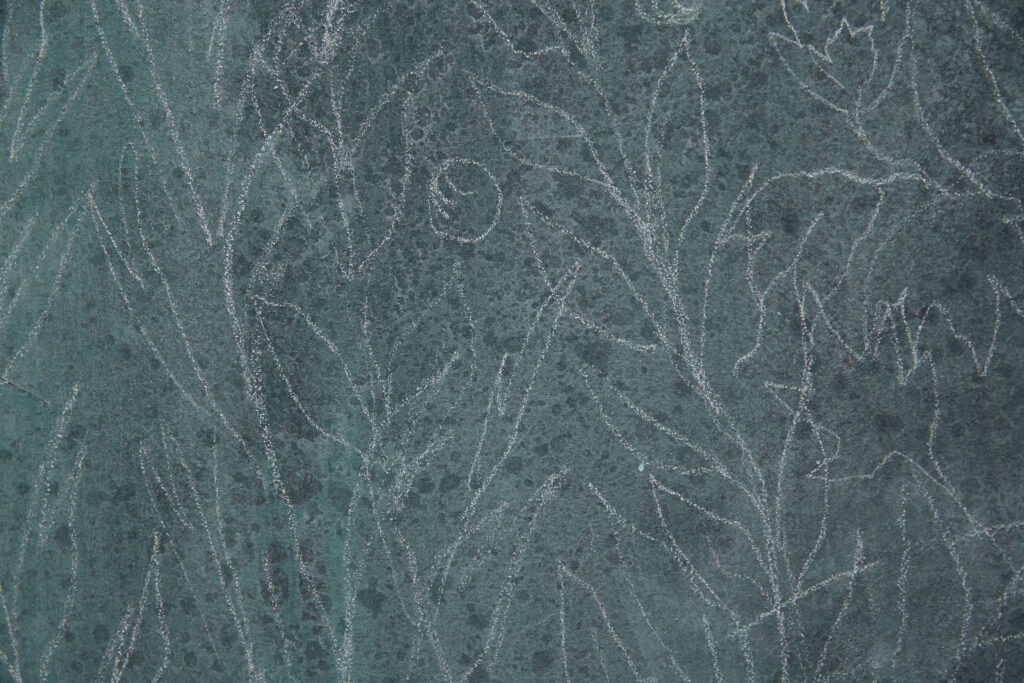 For several years, he and his brother Sébastien have created decorative art works combining paint and metal leaf, notably extraordinary mirrors halfway between paintings and reflections. Never totally reflective, the surface consists in blurry, scratched, cloudy glass where the objects reflected seem to get lost.
