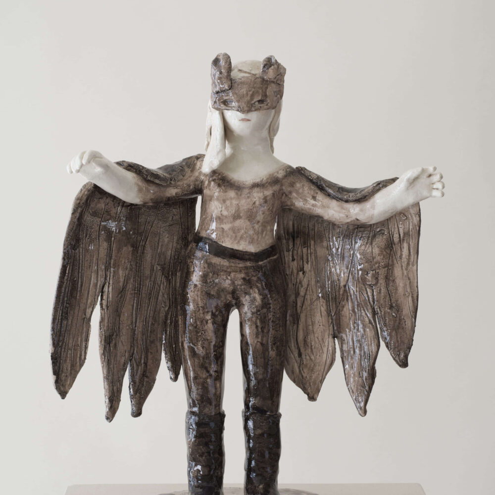 Eager to have her own studio, she ended up buying a disused café in Montreuil, where she and her companion worked for months transforming it into a studio and restoring its former splendor. It is a place full of light, opening out onto the neighborhood, inspirational. It is here that the artist began to produce ceramic sculptures in enameled clay, of great poetic strength. In addition, there are drawings which accompany the sculptures or precede them.