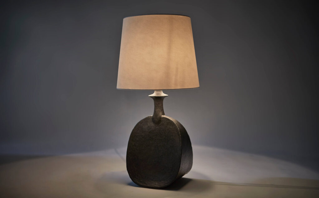 Table lamp entitled “Capri”. Mat black enameled sandstone.