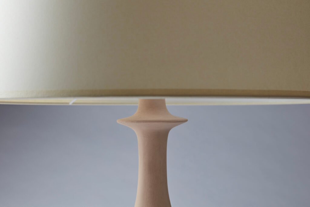 Table lamp entitled “Capri”. Mat powder pink stoneware.