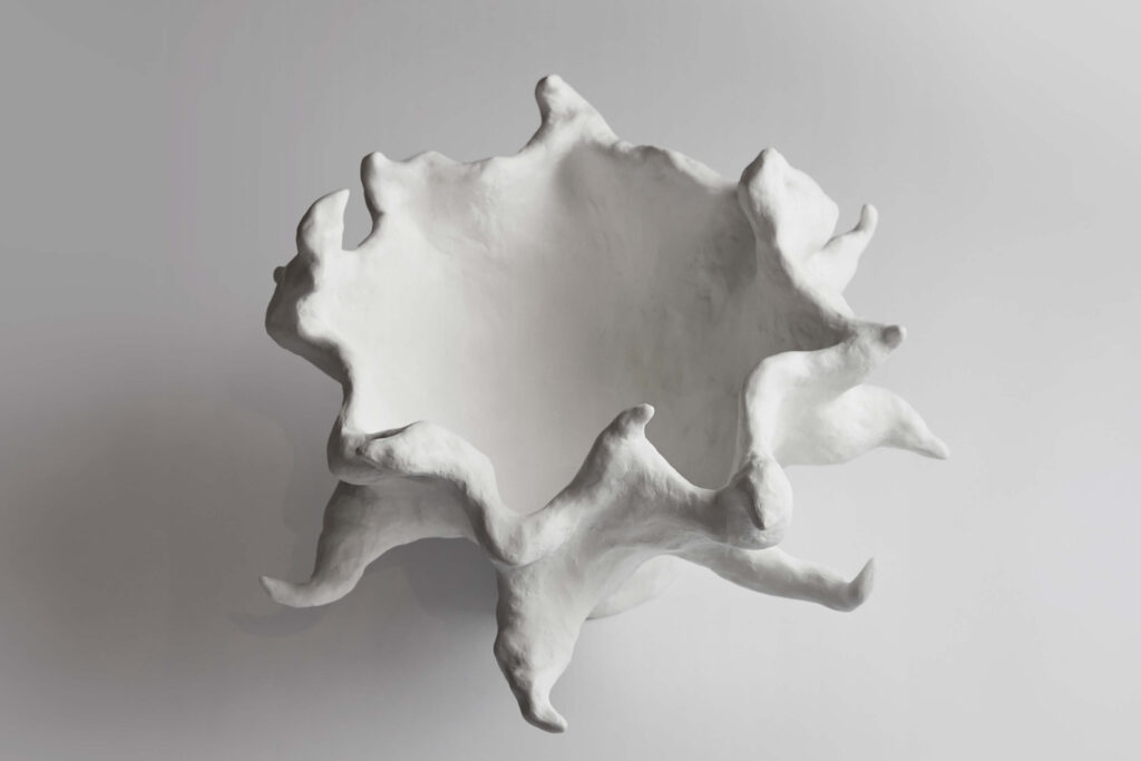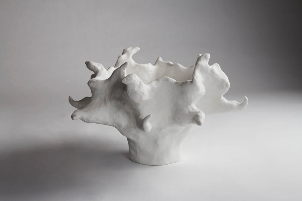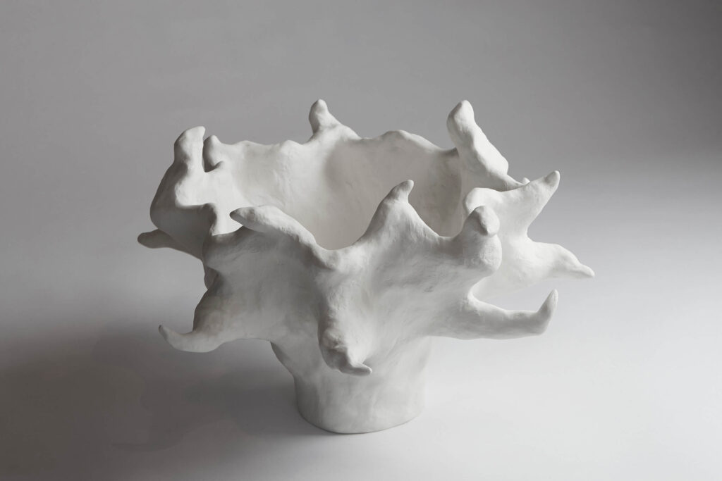 A vessel entitled “Dionne”. Hydrostone and gesso.