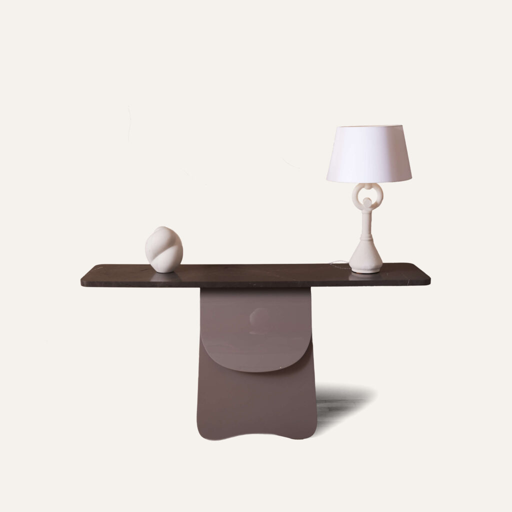 A console entitled “Elytre”, marble top and lacquered aluminum cast base.