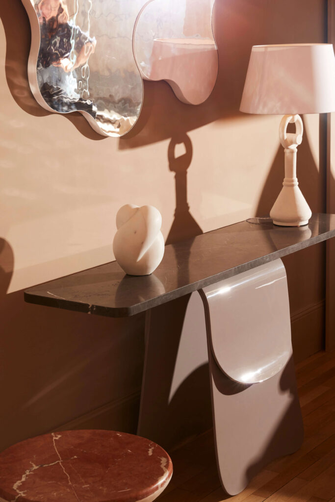 Since 2014, he has been creating his own pieces of furniture and lighting. He has also worked with ceramist Isabelle Sicart to design two series of consoles and side tables.