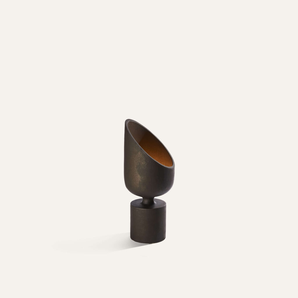 A table lamp entitled “Etna”. Enameled stoneware in mat bronze.