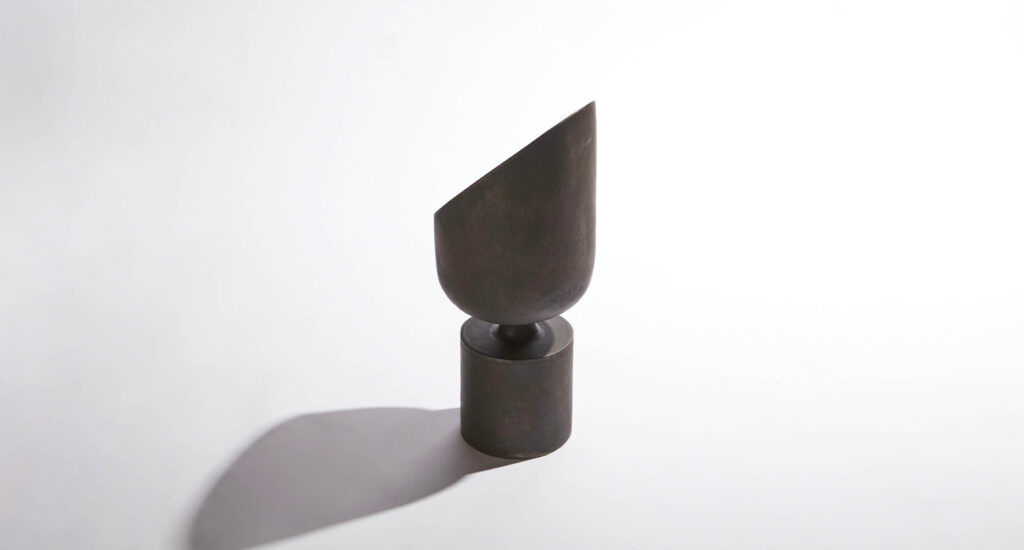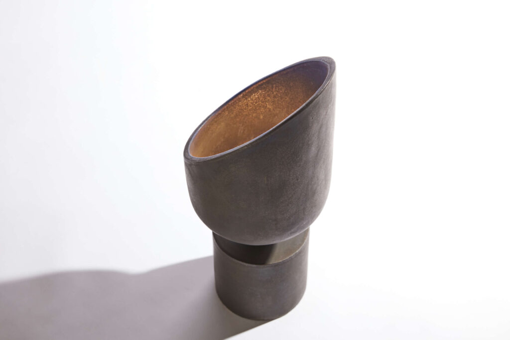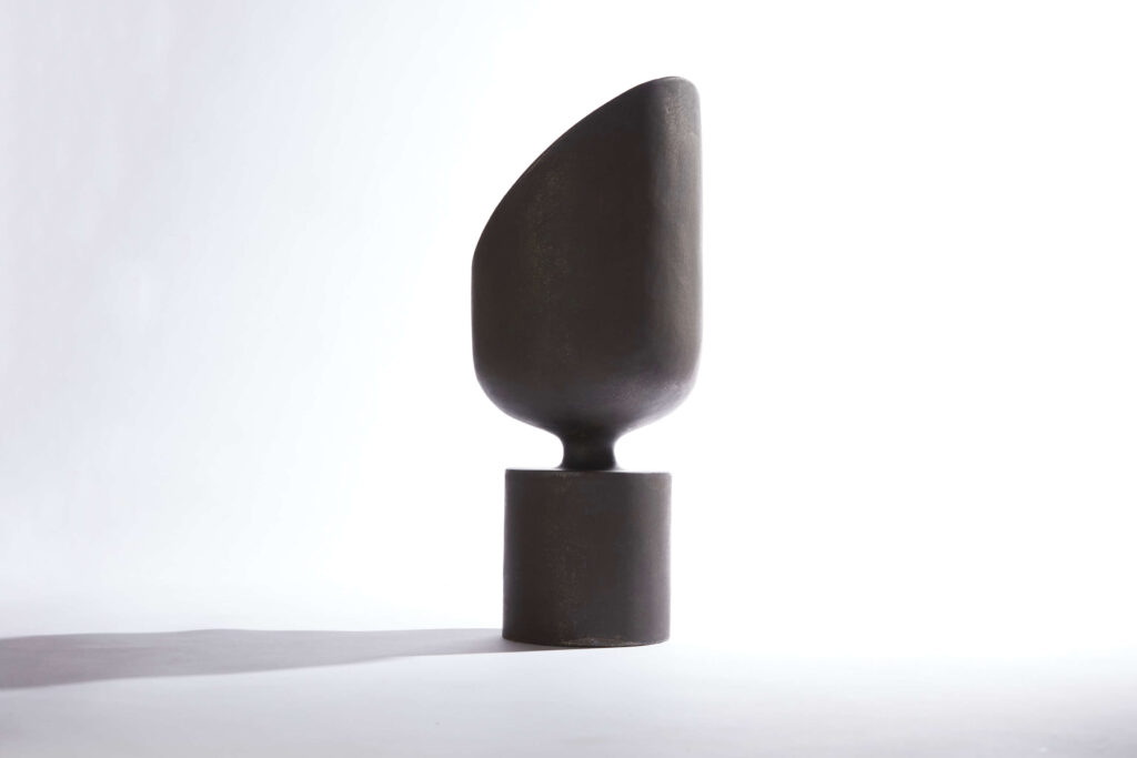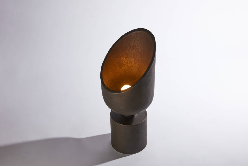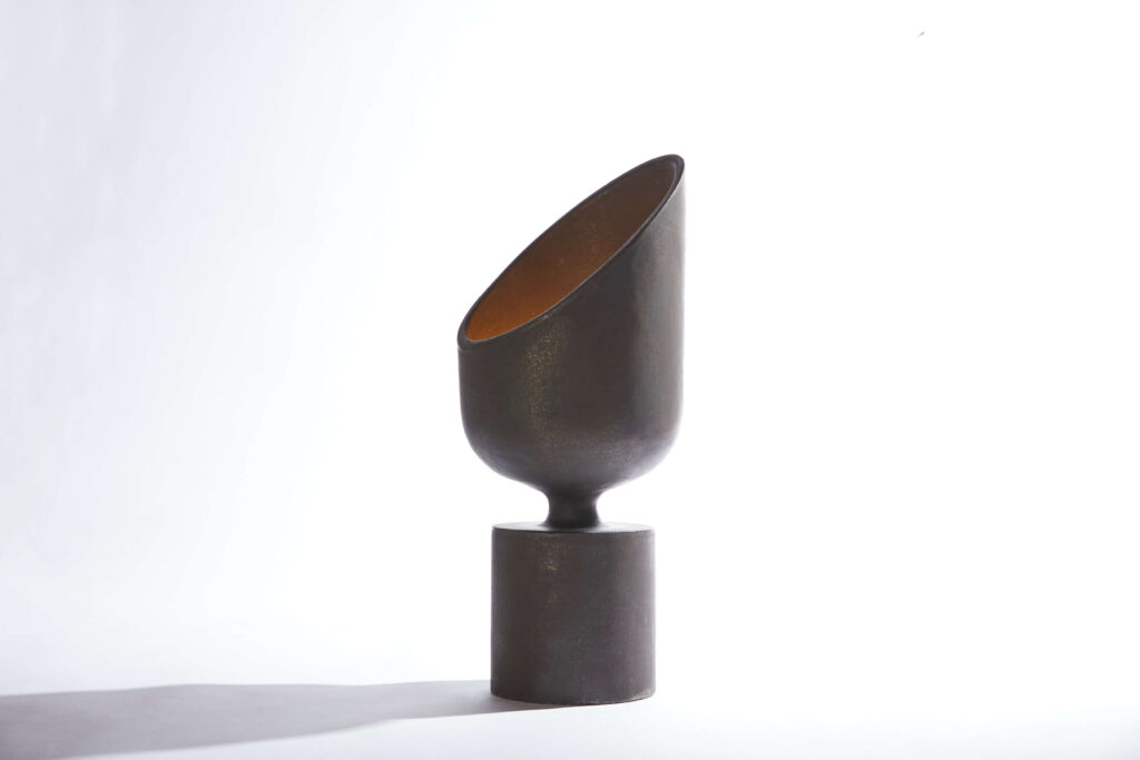A table lamp entitled “Etna”. Enameled stoneware in mat bronze.