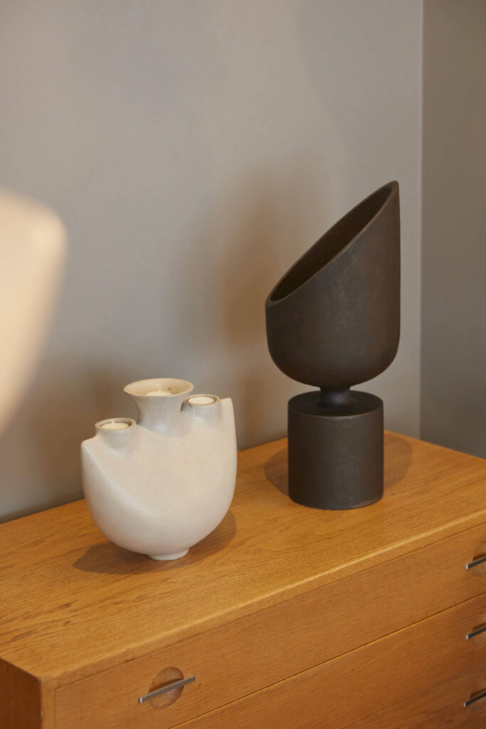 After studying ceramics at the Graduate school of Applied Arts, she joined the Lalique creation studio in 1991. Later, she started developing her very own designs that combine precision and softness. Since 2004, she has been producing and modeling ceramic objects, unique pieces or in limited series. She has also worked with designer Emmanuel Levet Stenne to create two table collections with enameled stoneware feet or top, eg. the “Polka” pedestal table, the “Sirtaki” console and the “ Fado ” coffee table.