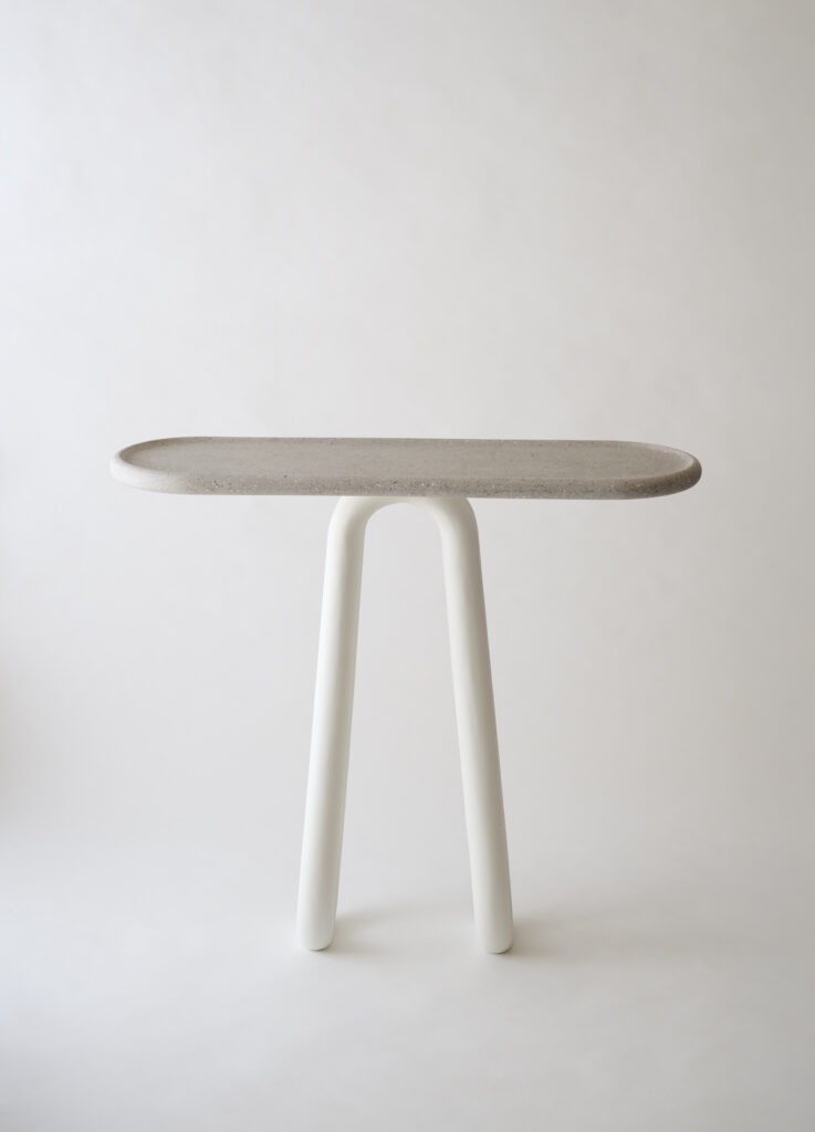 Staff legs and a terrazzo-style top made from plaster and recycled paper.