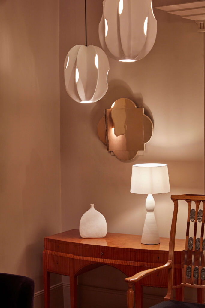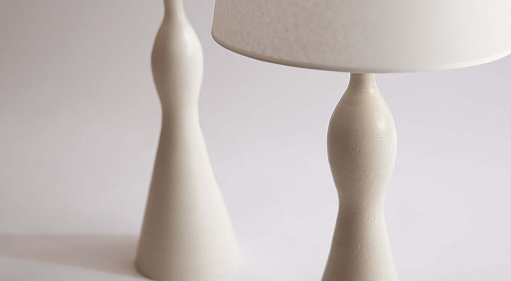 A table lamp entitled “Opoponax”. Off-white enameled stoneware.