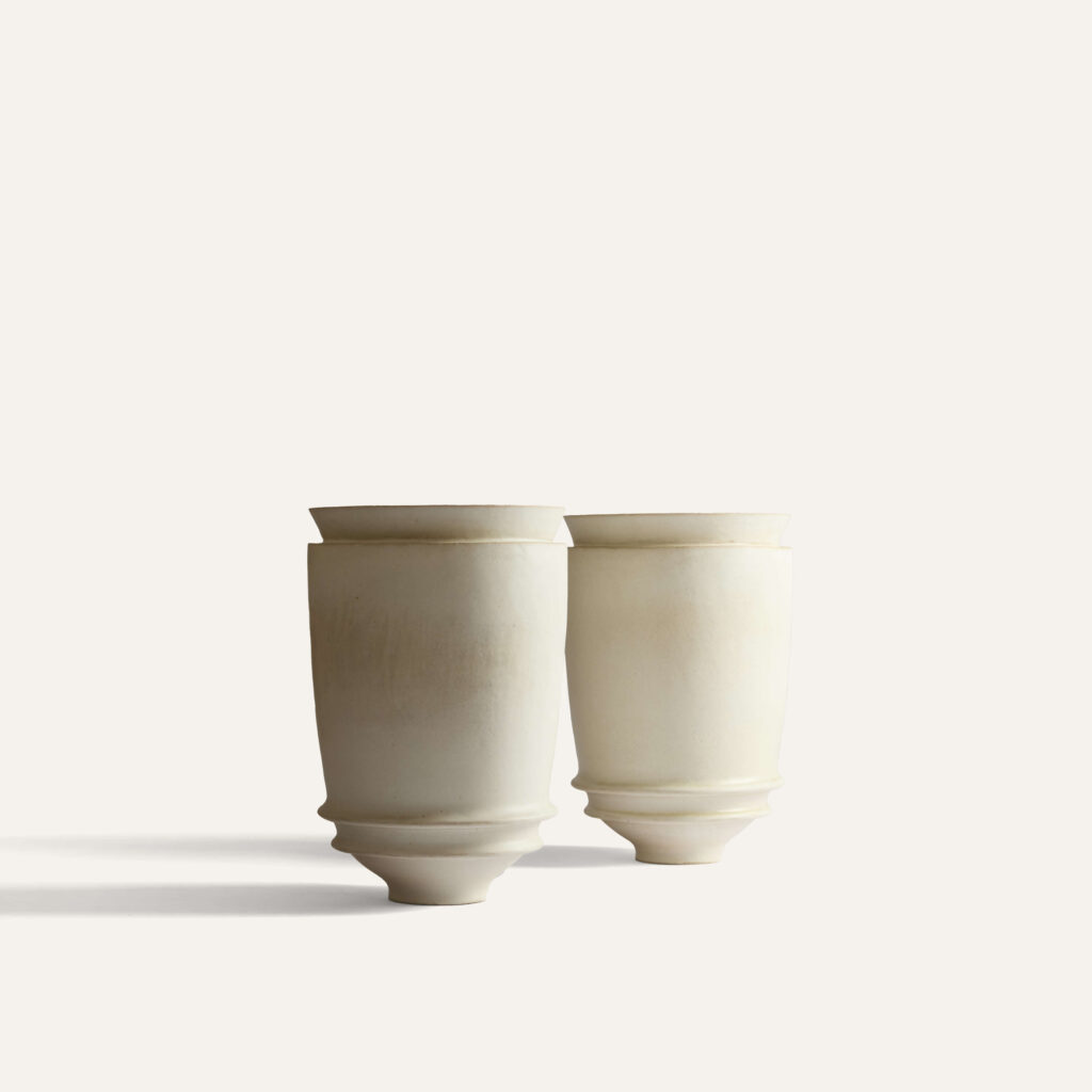 After studying ceramics at the Graduate school of Applied Arts, she joined the Lalique creation studio in 1991. Later, she started developing her very own designs that combine precision and softness. Since 2004, she has been producing and modeling ceramic objects, unique pieces or in limited series. She has also worked with designer Emmanuel Levet Stenne to create two table collections with enameled stoneware feet or top, eg. the “Polka” pedestal table, the “Sirtaki” console and the “ Fado ” coffee table.