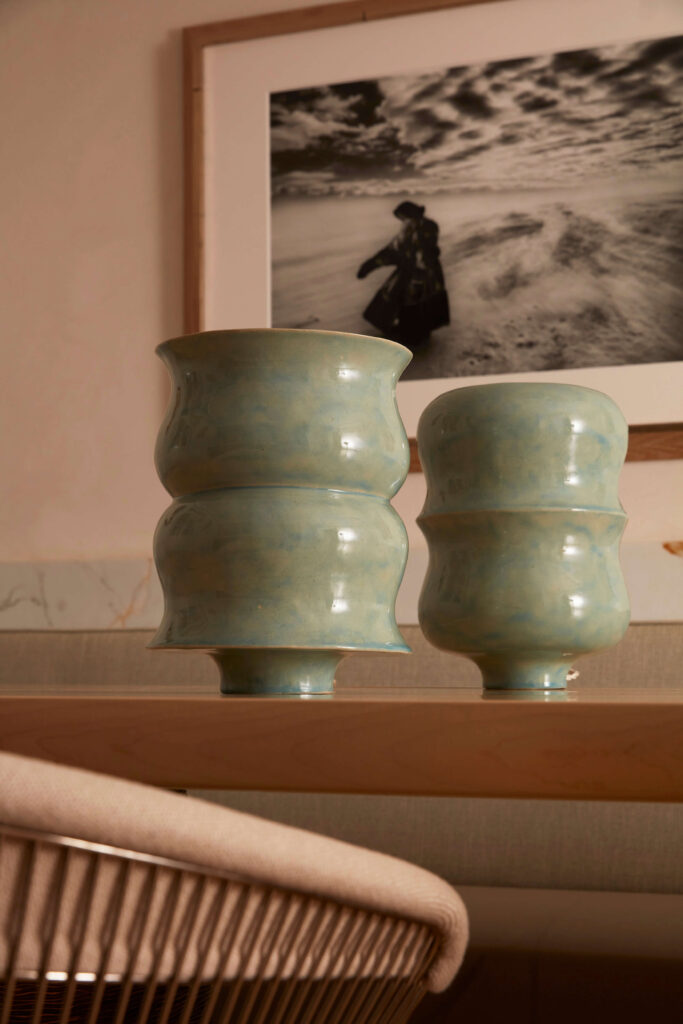 After studying ceramics at the Graduate school of Applied Arts, she joined the Lalique creation studio in 1991. Later, she started developing her very own designs that combine precision and softness. Since 2004, she has been producing and modeling ceramic objects, unique pieces or in limited series. She has also worked with designer Emmanuel Levet Stenne to create two table collections with enameled stoneware feet or top, eg. the “Polka” pedestal table, the “Sirtaki” console and the “ Fado ” coffee table.