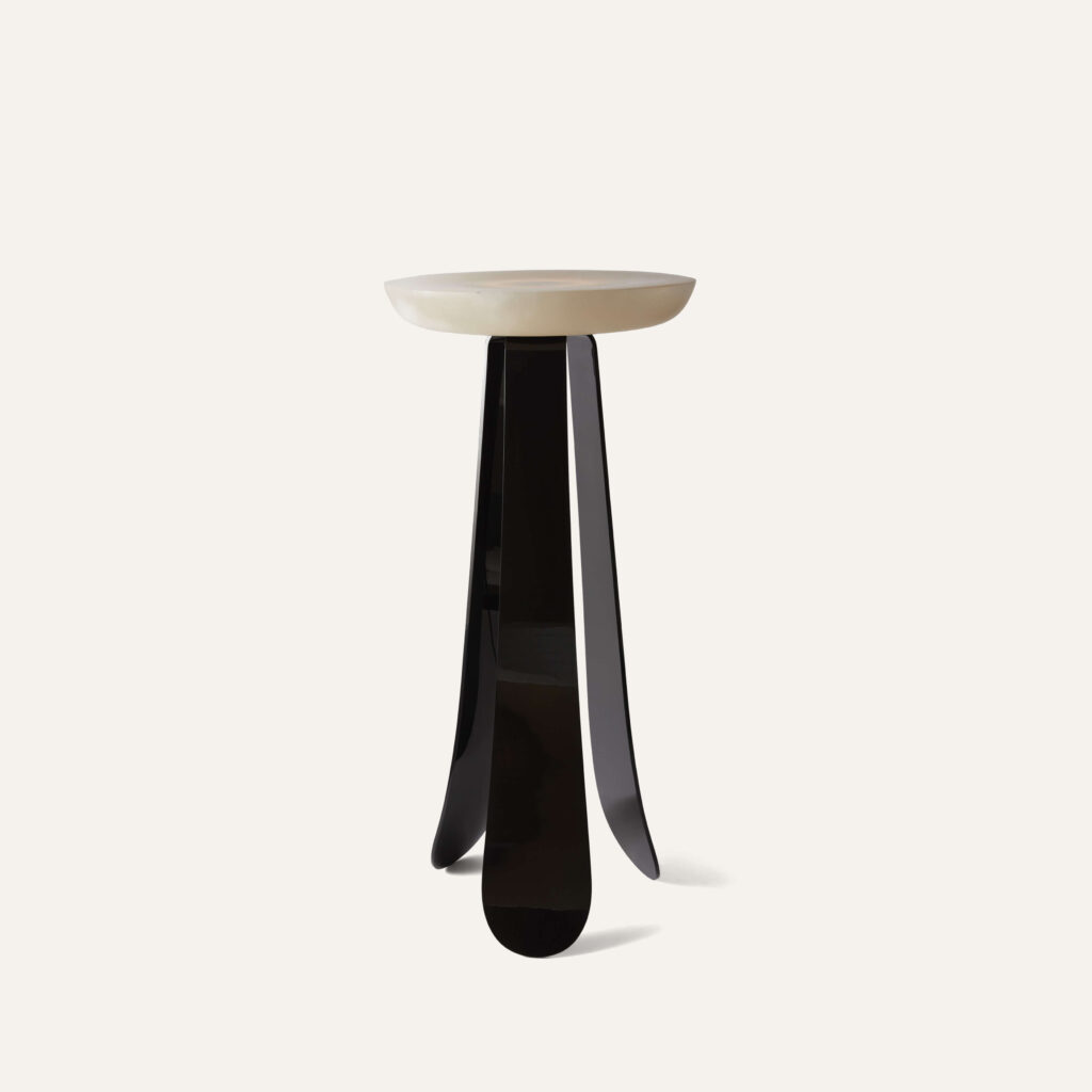 His works explore the language of materials, mixing brass with stone, wood or glass. He collaborates with craftsmen to polish and soften the alabaster or marble and carve out a roundness, almost an emotion. Bronze and aluminium are often the structure of his pieces, they are casted to obtain fluid forms, their curves shape contemporary, elegant and refined pieces.