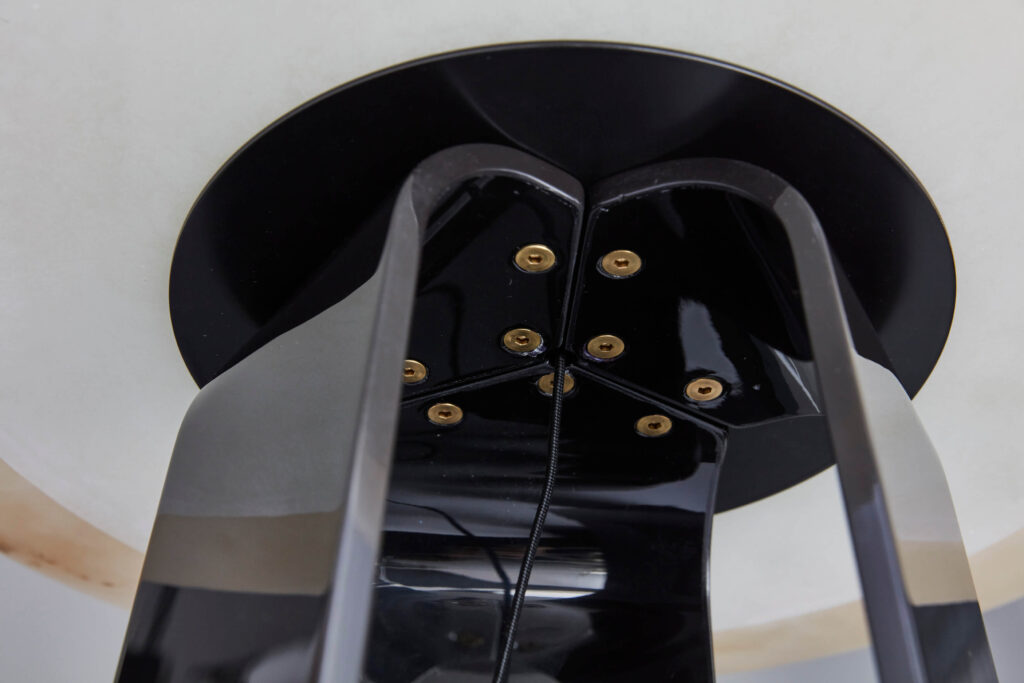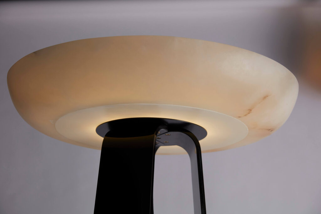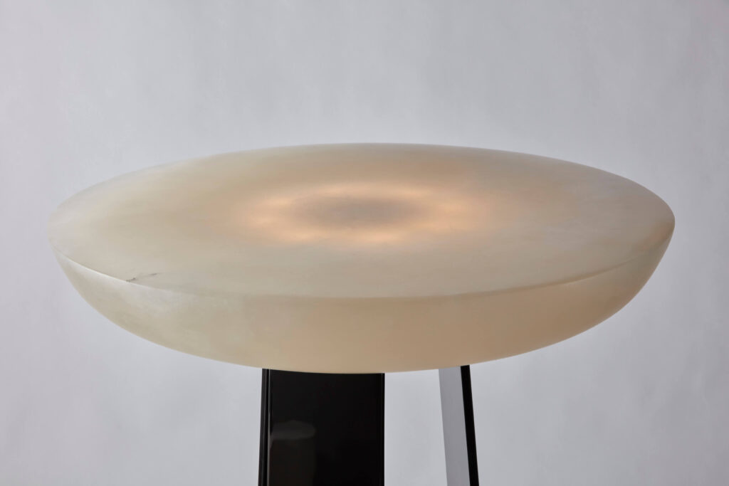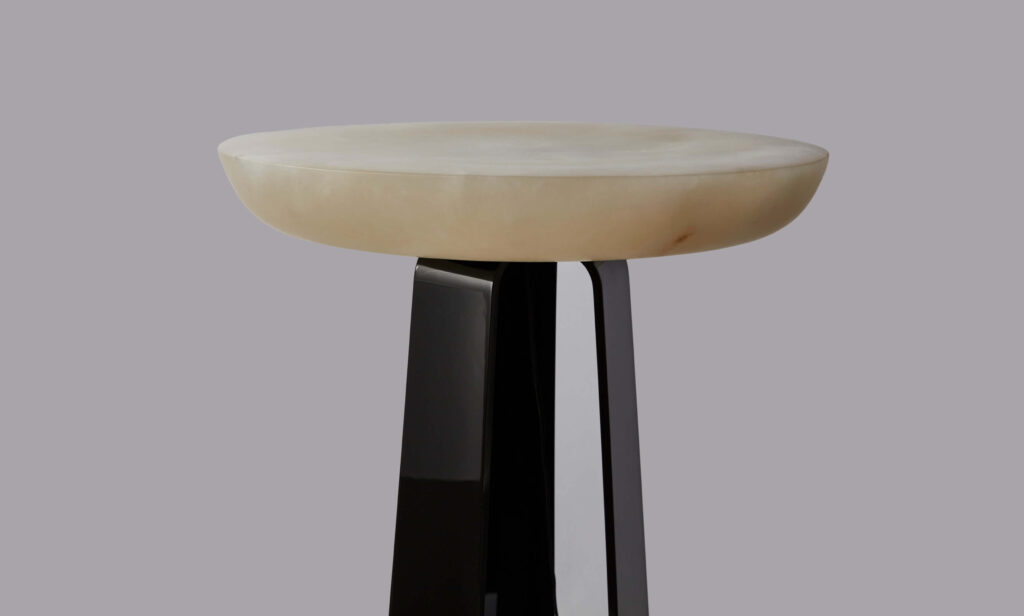 His works explore the language of materials, mixing brass with stone, wood or glass. He collaborates with craftsmen to polish and soften the alabaster or marble and carve out a roundness, almost an emotion. Bronze and aluminium are often the structure of his pieces, they are casted to obtain fluid forms, their curves shape contemporary, elegant and refined pieces.