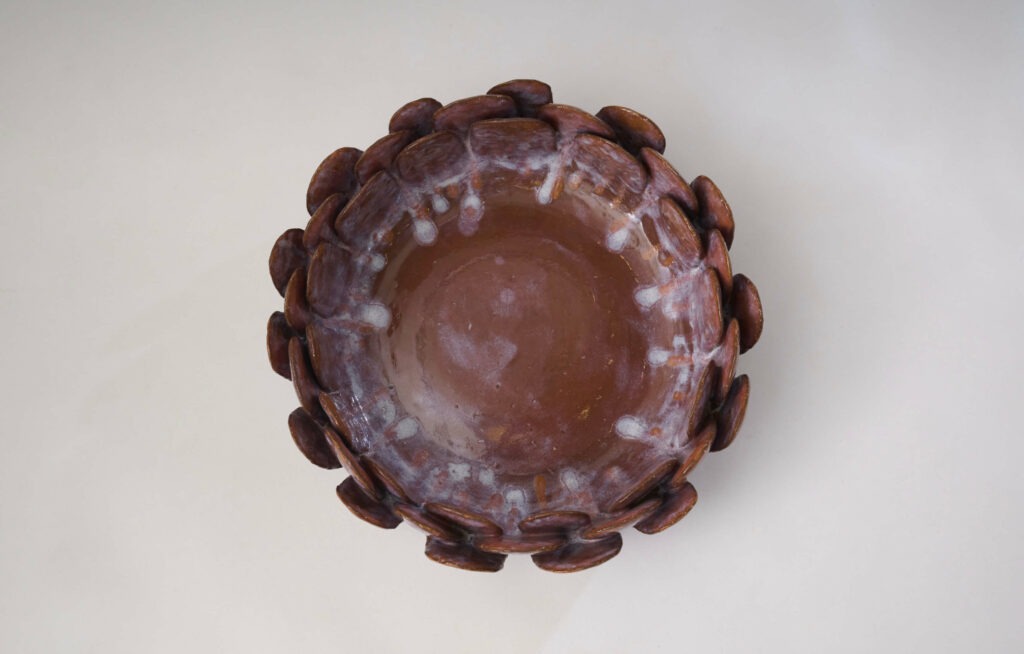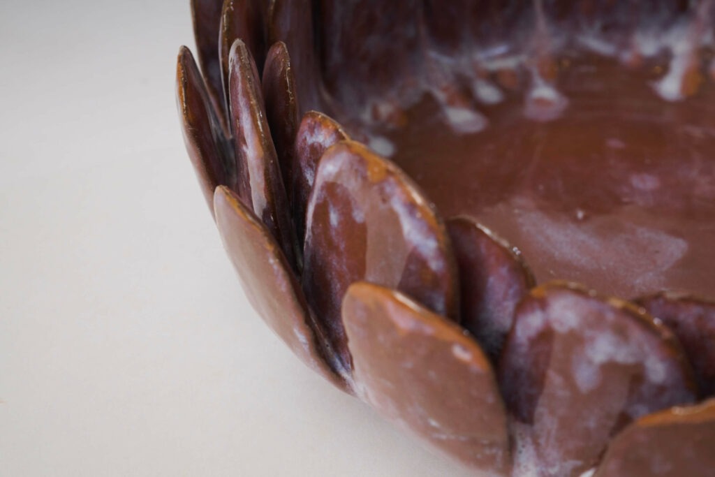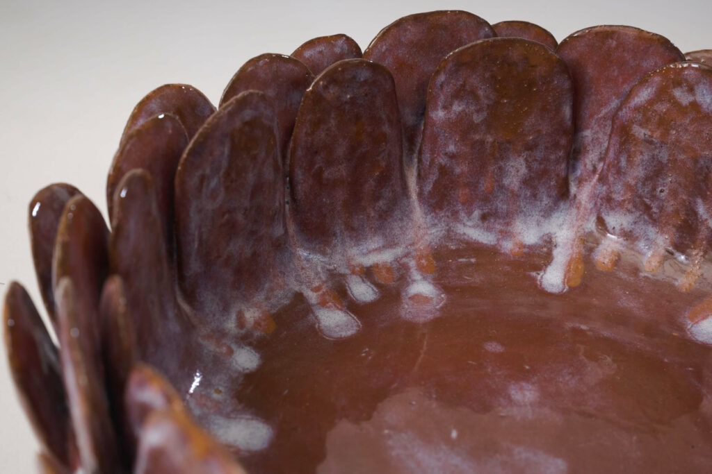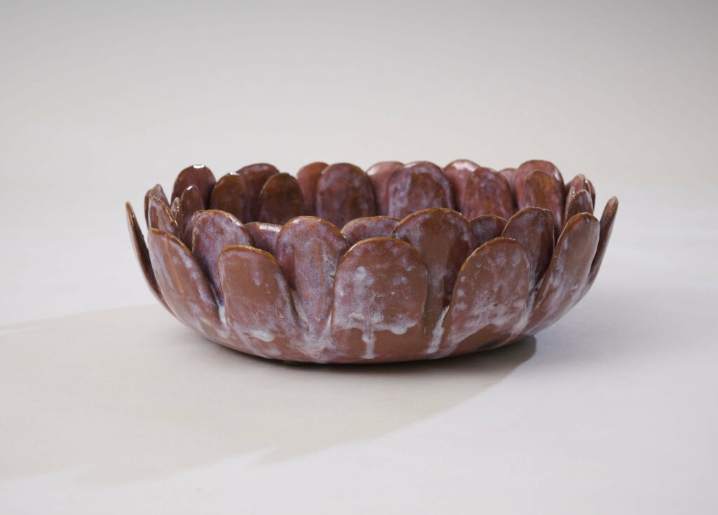 Enamelled stoneware dish entitled “Purple Pink.” One-of-a-kind piece.