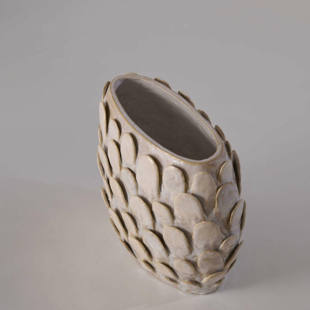 Born in 1968 in Lille France, Godeleine de Rosamel lives and works in Los Angeles. After graduating from ERG (Ecole de Recherche graphique) in Brussel, she worked as a painter and illustrator for 10 years in Paris. Since moving in 2011 in Los Angeles, she started working with ceramics full time and is currently collaborating with several galleries in the US. She likes that her work let her play first at being the original creator of imaginary life forms and then at enacting the evolutionary process by which they struggle to adapt and perfect themselves. After spending so much time watching how the animals were growing and evolving, she realized that it was time to give them their own biotope of plants and trees, that hopefully will develop and mature in relationship with them. Creating the plants proves as complicated as creating the animals. Of course, all life forms are sophisticated and there is no reason for the vegetal kingdom to be any easier to imagine and create than the animal one. This new development in her work follows Godeleine’s interest in natural history, evolution and the wonders of Nature in general.