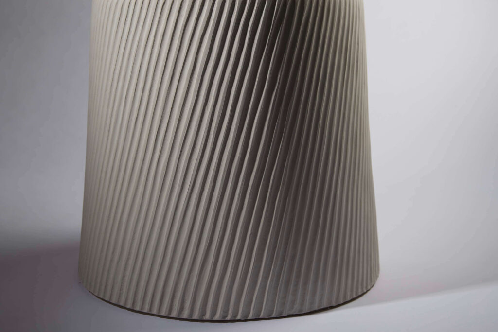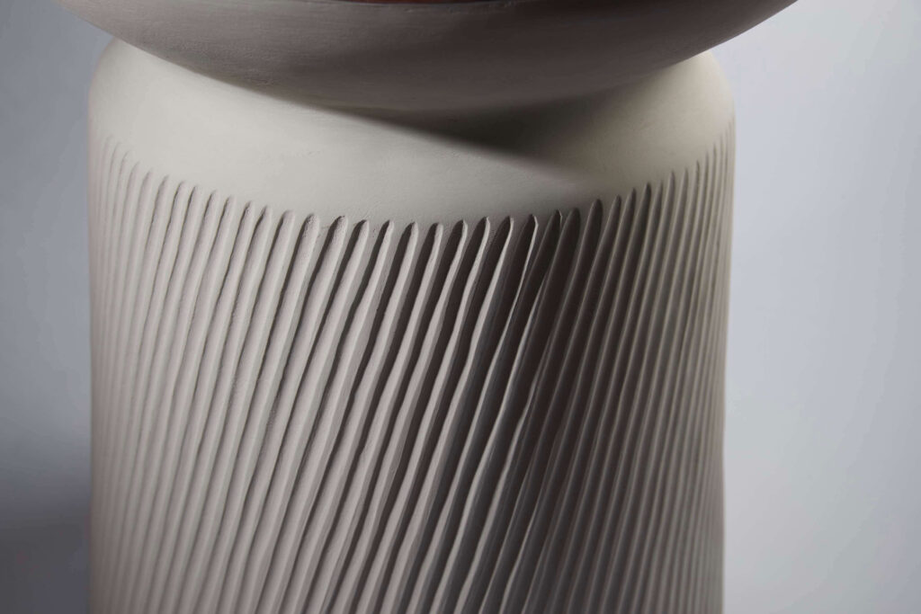 After studying ceramics at the Graduate school of Applied Arts, she joined the Lalique creation studio in 1991. Later, she started developing her very own designs that combine precision and softness. Since 2004, she has been producing and modeling ceramic objects, unique pieces or in limited series. She has also worked with designer Emmanuel Levet Stenne to create two table collections with enameled stoneware feet or top, eg. the “Polka” pedestal table, the “Sirtaki” console and the “ Fado ” coffee table.
