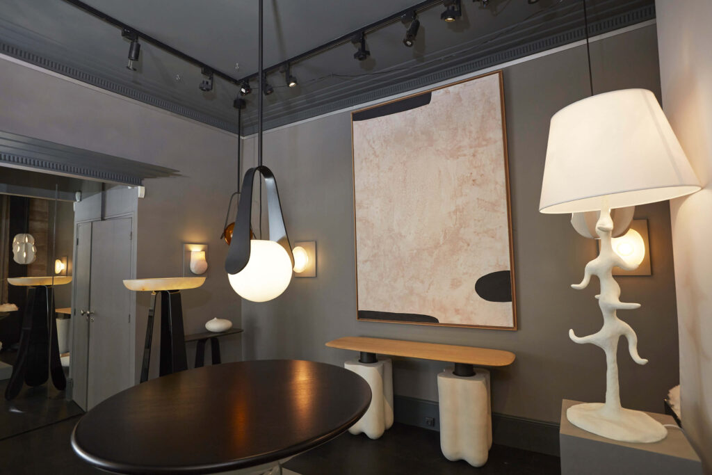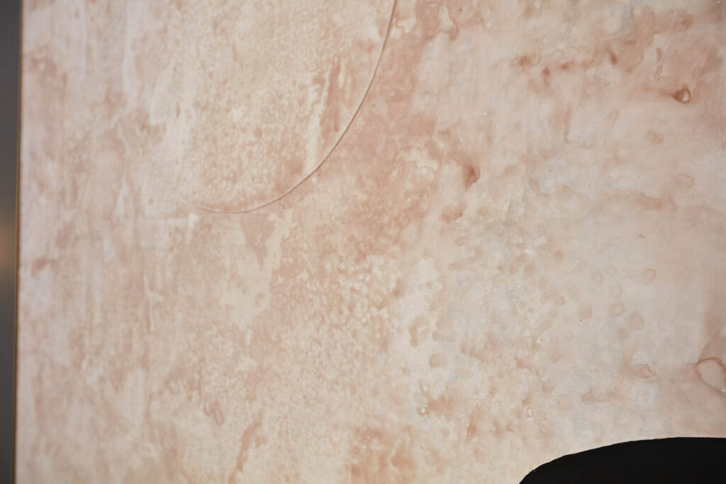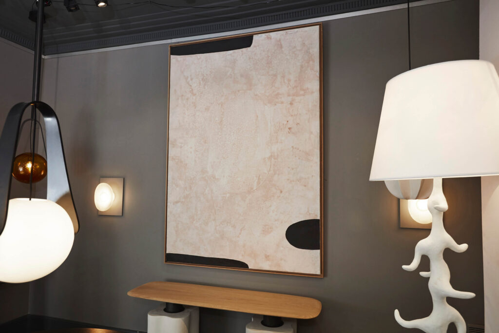 For several years, he and his brother Sébastien have created decorative art works combining paint and metal leaf, notably extraordinary mirrors halfway between paintings and reflections. Never totally reflective, the surface consists in blurry, scratched, cloudy glass where the objects reflected seem to get lost.