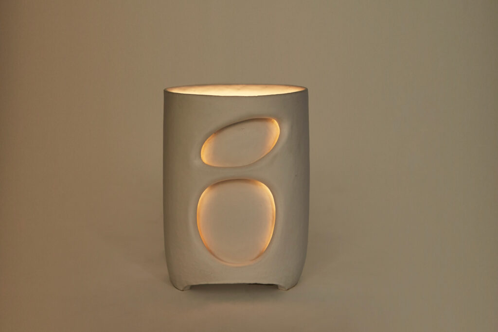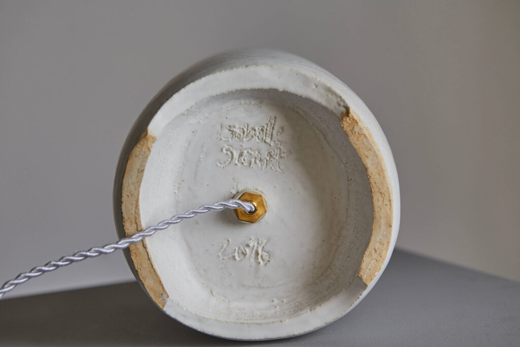 A cylindrical table lamp entitled “Santorin”, sculpted stoneware.
