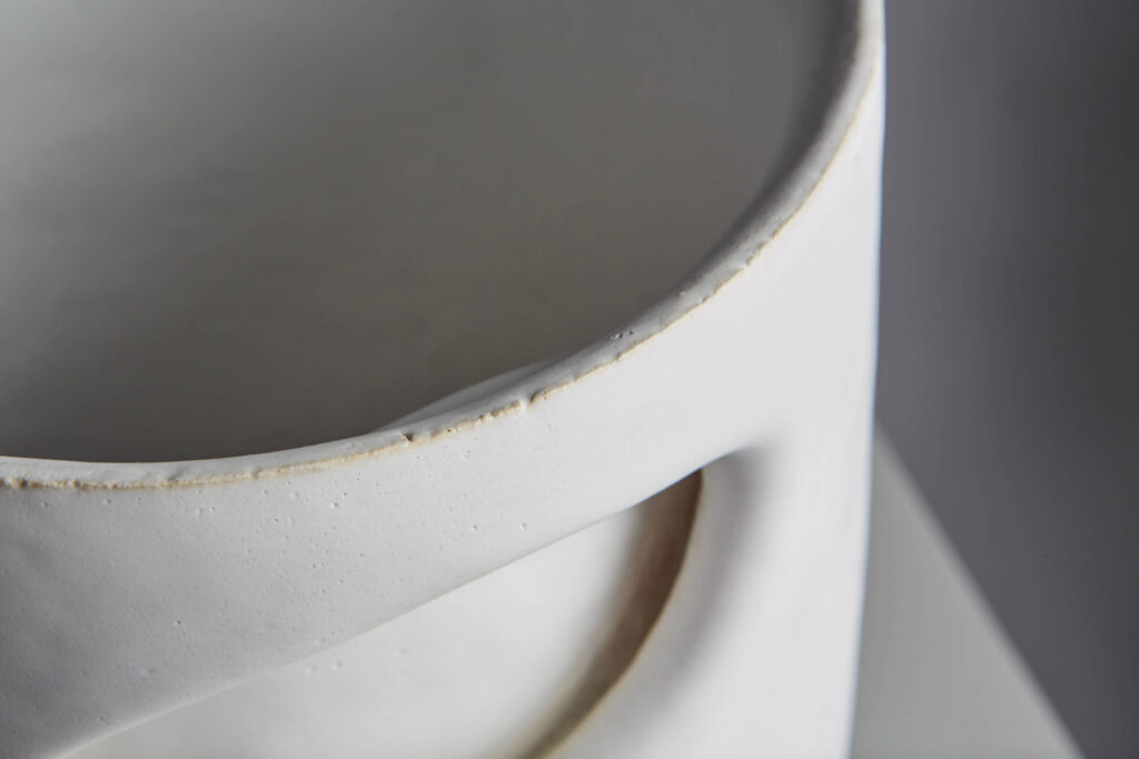 After studying ceramics at the Graduate school of Applied Arts, she joined the Lalique creation studio in 1991. Later, she started developing her very own designs that combine precision and softness. Since 2004, she has been producing and modeling ceramic objects, unique pieces or in limited series. She has also worked with designer Emmanuel Levet Stenne to create two table collections with enameled stoneware feet or top, eg. the “Polka” pedestal table, the “Sirtaki” console and the “ Fado ” coffee table.
