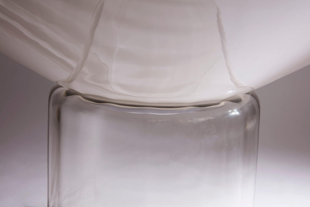 His works explore the language of materials, mixing brass with stone, wood or glass. He collaborates with craftsmen to polish and soften the alabaster or marble and carve out a roundness, almost an emotion. Bronze and aluminium are often the structure of his pieces, they are casted to obtain fluid forms, their curves shape contemporary, elegant and refined pieces.