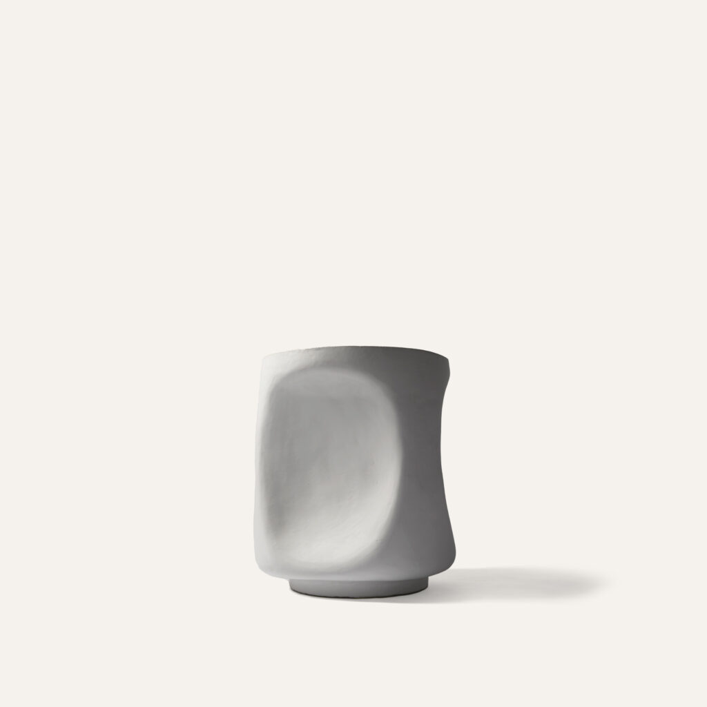 A stool or side table entitled “Stone”. Mat white enamelled stoneware.