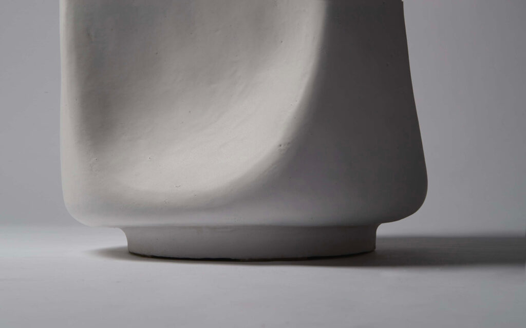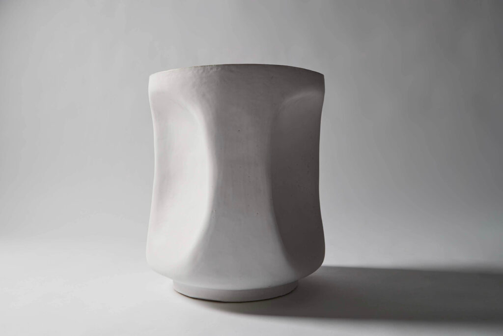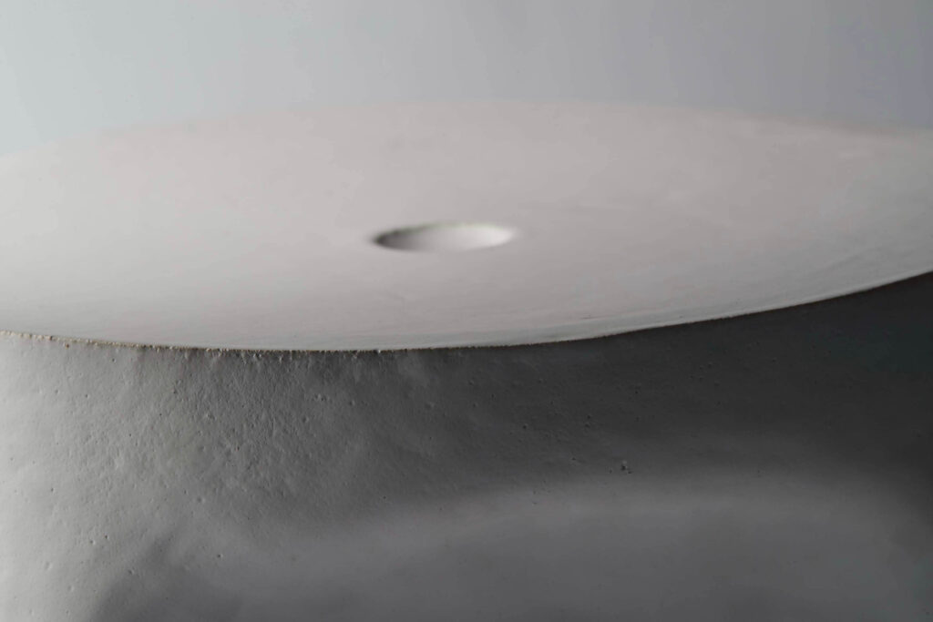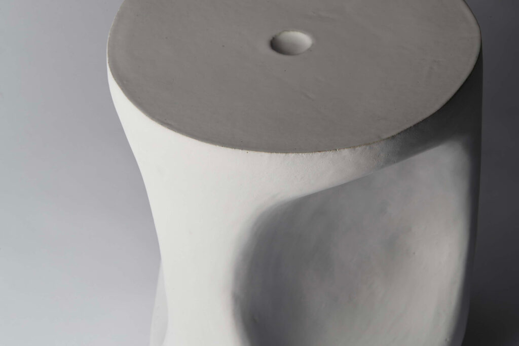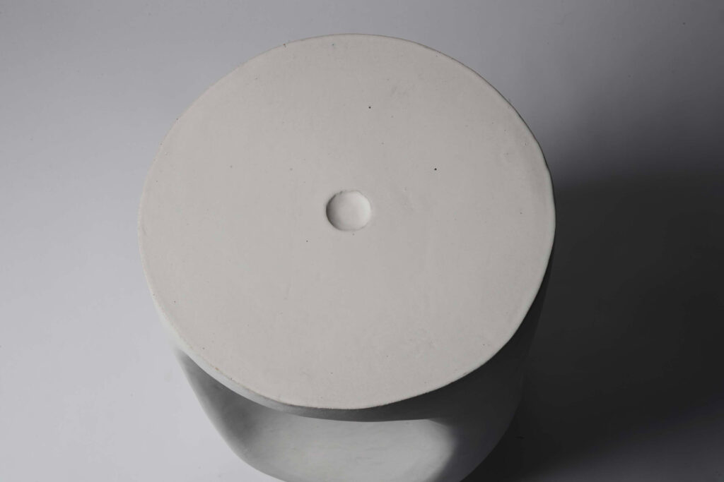 A stool or side table entitled “Stone”. Mat white enamelled stoneware.