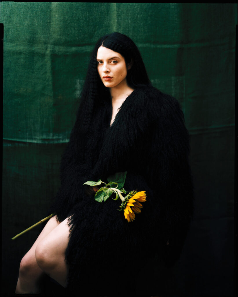 A woman with a double personality – Mady & Monette – posing the enigma of playful genetic, a bold, animal, panther skin, Black and white imparting the expectation of a future dream. … A Sun flower with a hesitant expression, a woman is multi-faceted and beautiful, primitive and universal, captured by the artist’s lens.