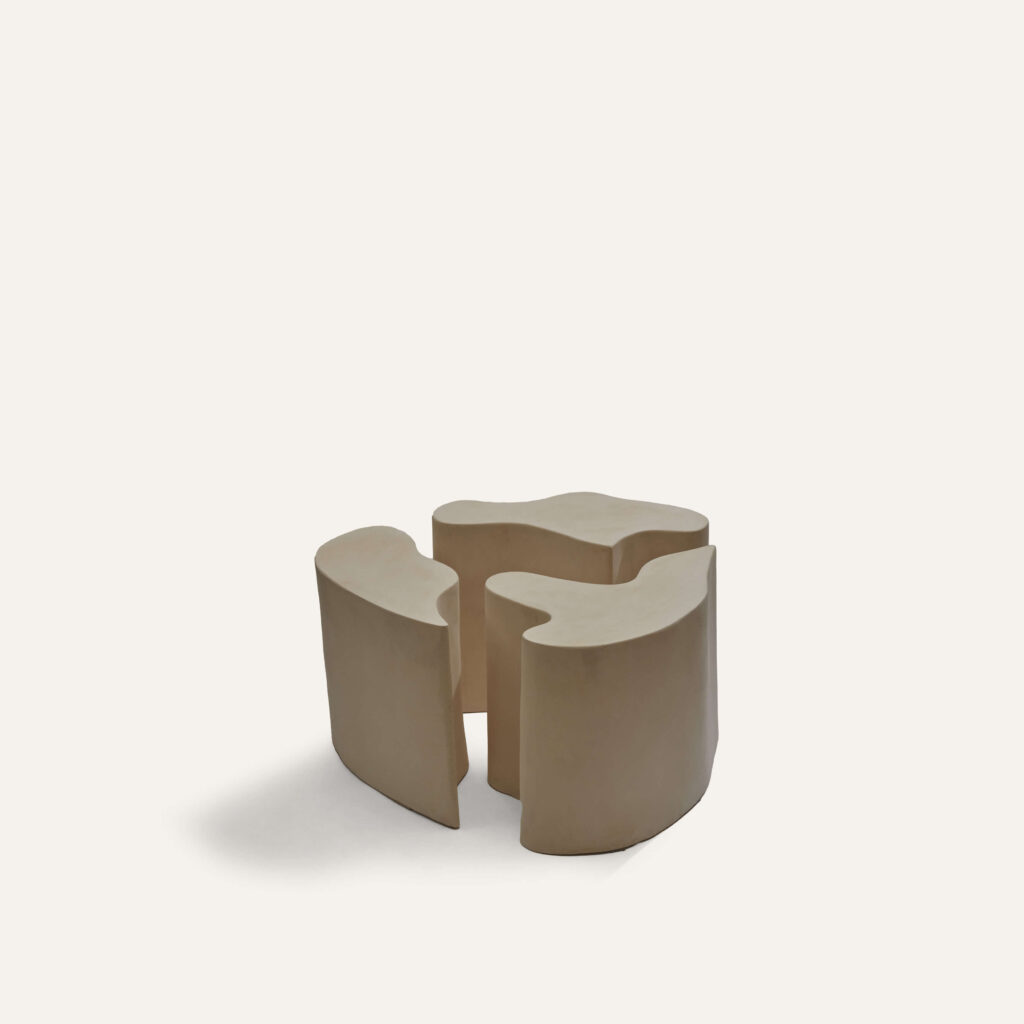 A side table made up of 3 module in raw stoneware.