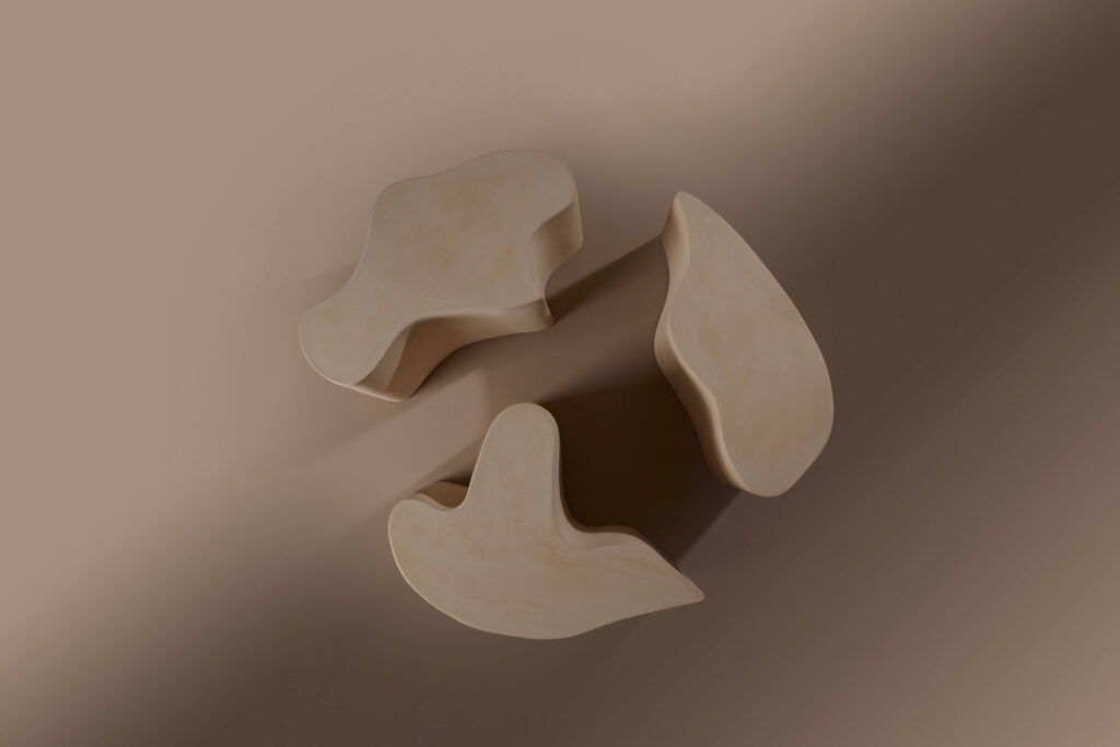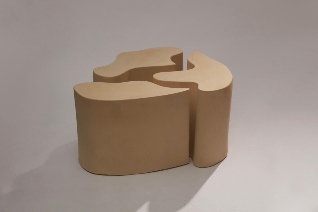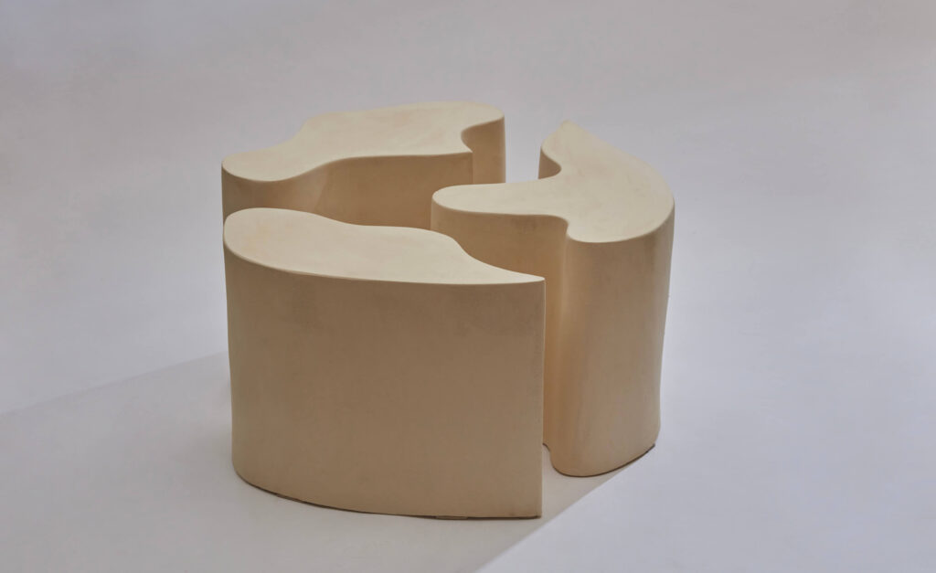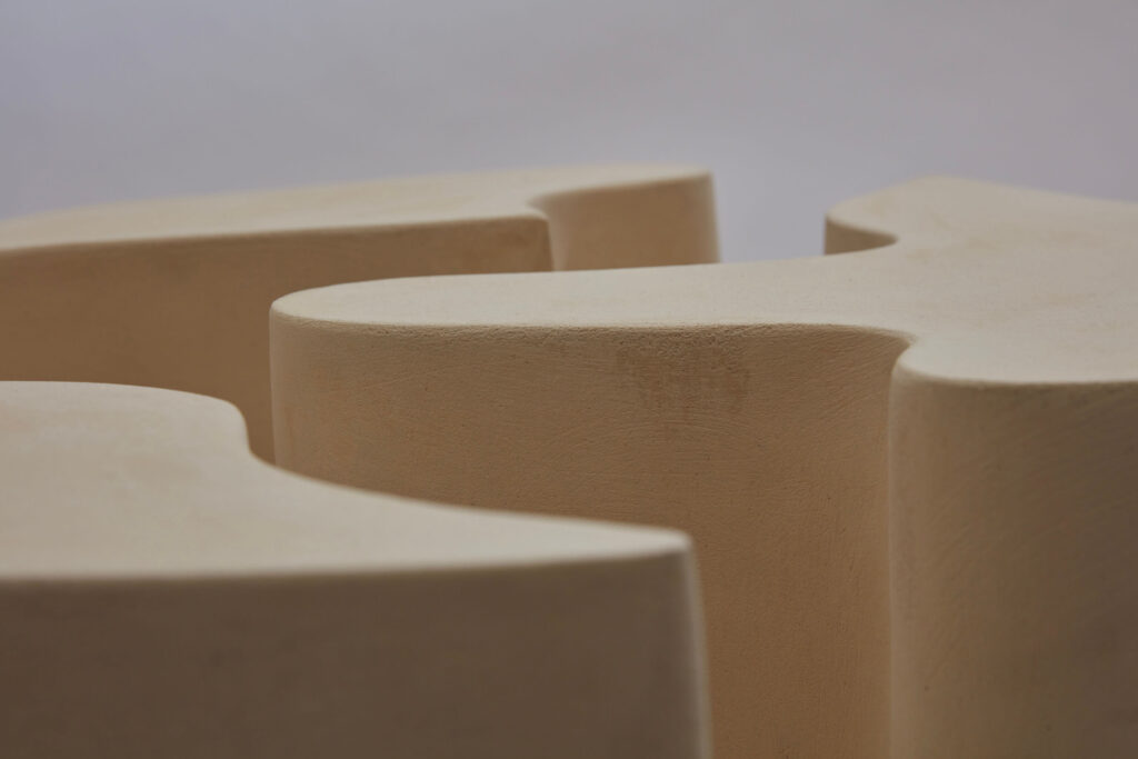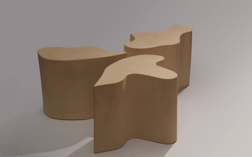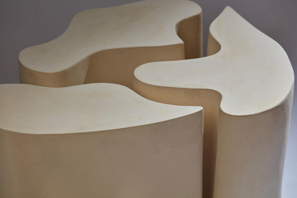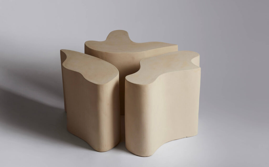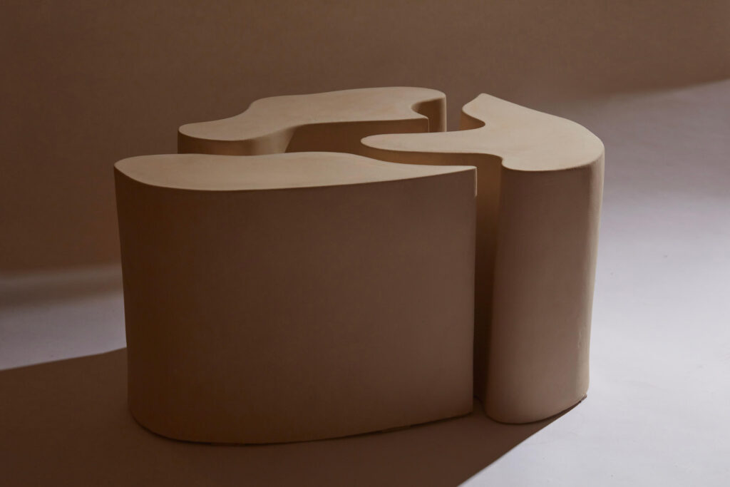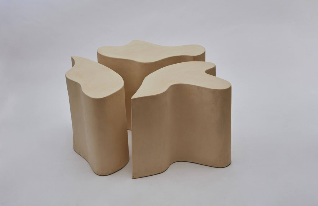 A side table made up of 3 module in raw stoneware.