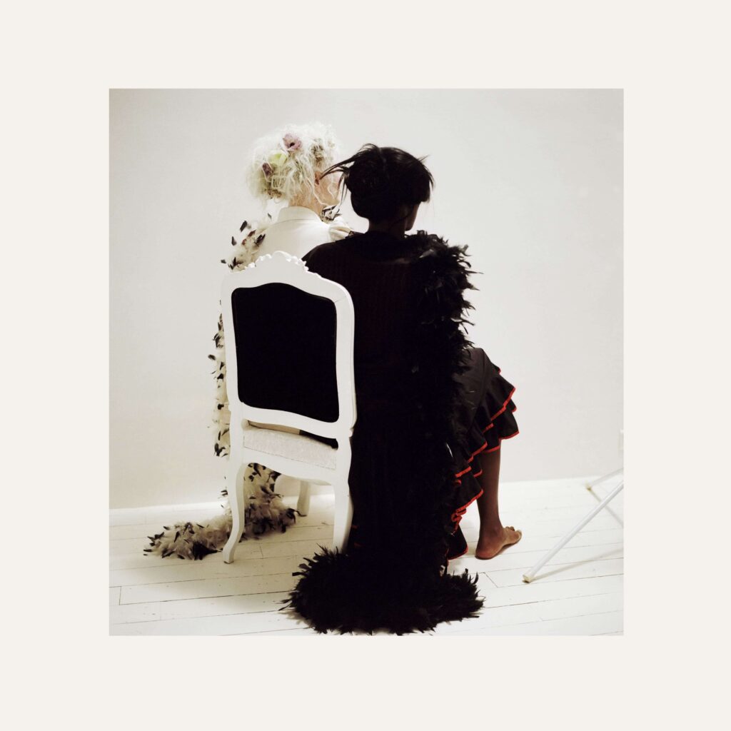 A woman with a double personality – Mady & Monette – posing the enigma of playful genetic, a bold, animal, panther skin, Black and white imparting the expectation of a future dream. … A Sun flower with a hesitant expression, a woman is multi-faceted and beautiful, primitive and universal, captured by the artist’s lens.