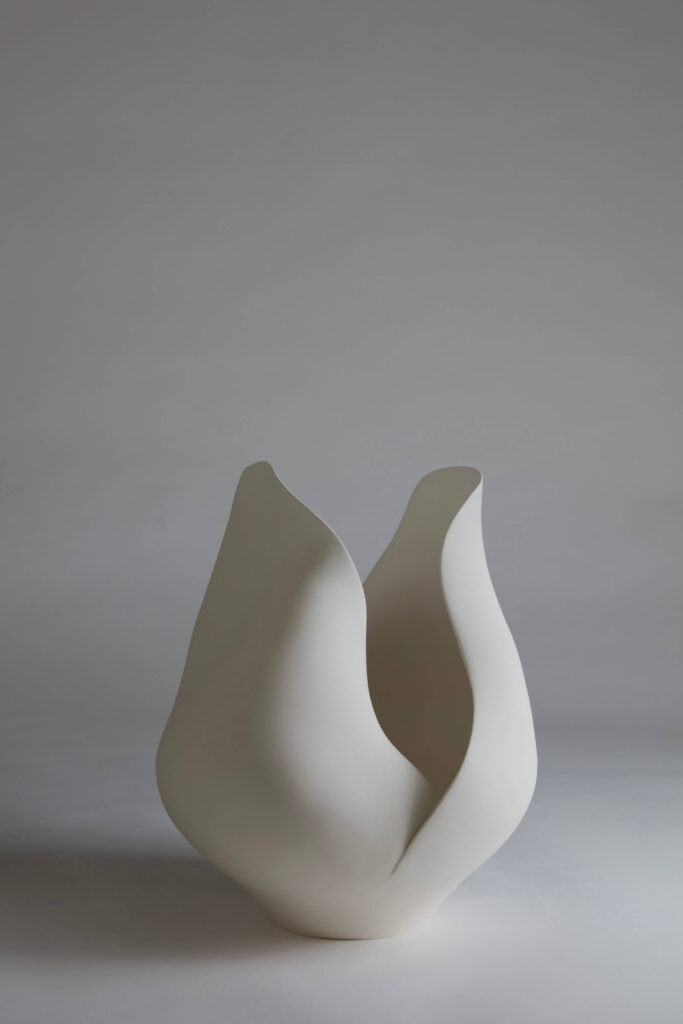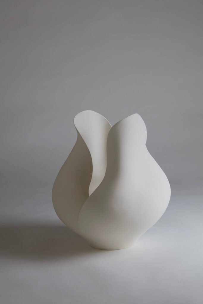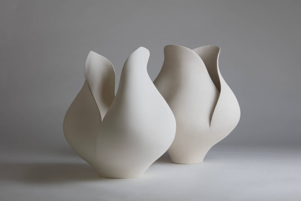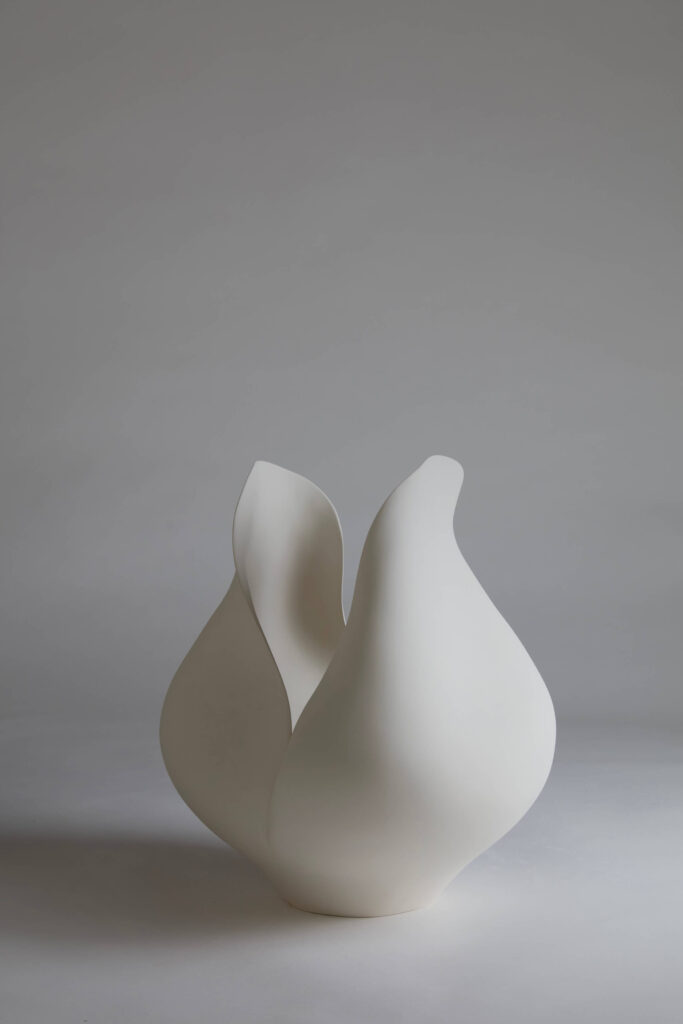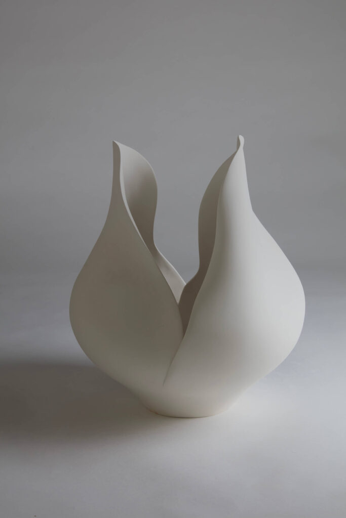 An earthenware sculpture entitled “White Flower.”