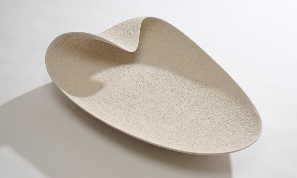 A stoneware sculpture entitled “Raw Slim Tray.”