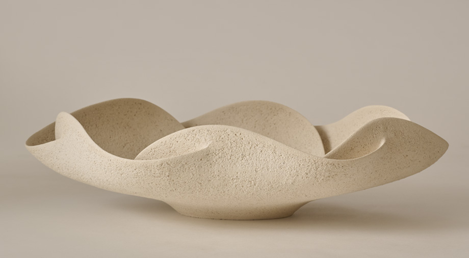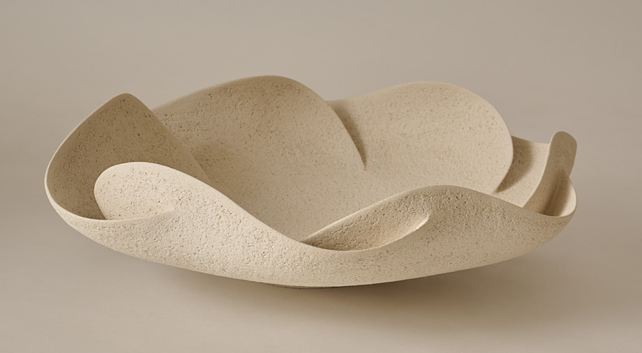 A stoneware sculpture entitled “Raw Waves.” Chamotte finish.