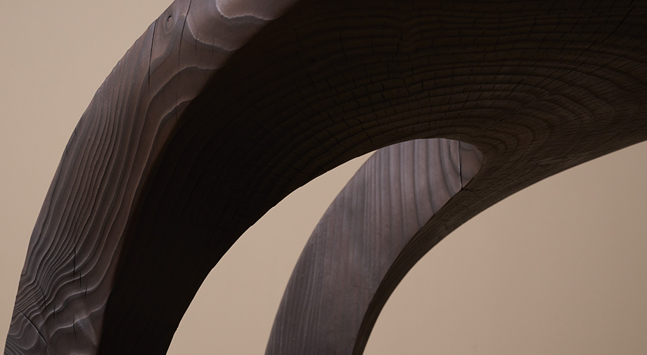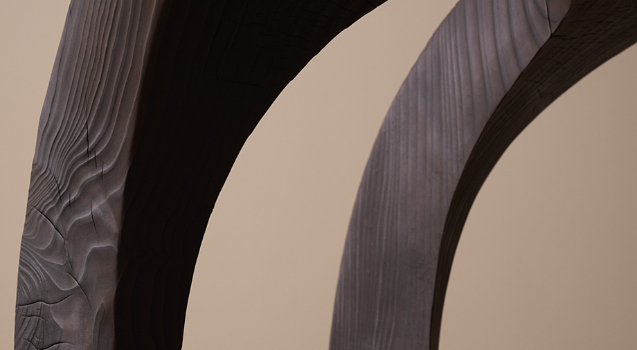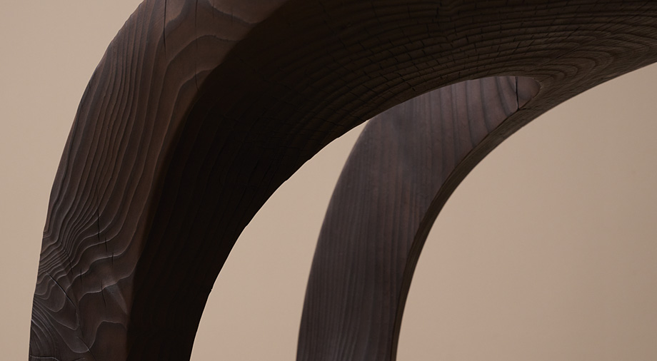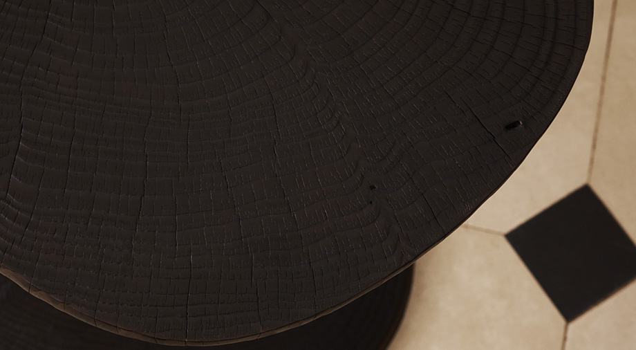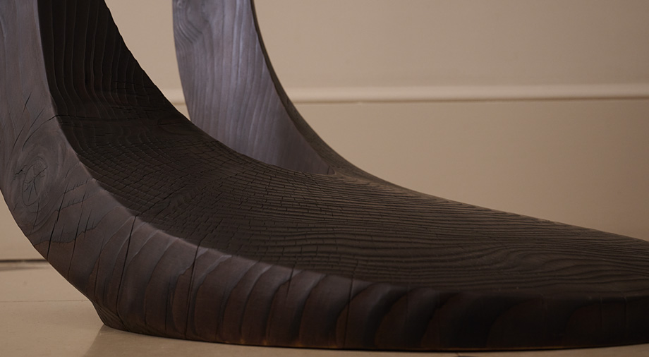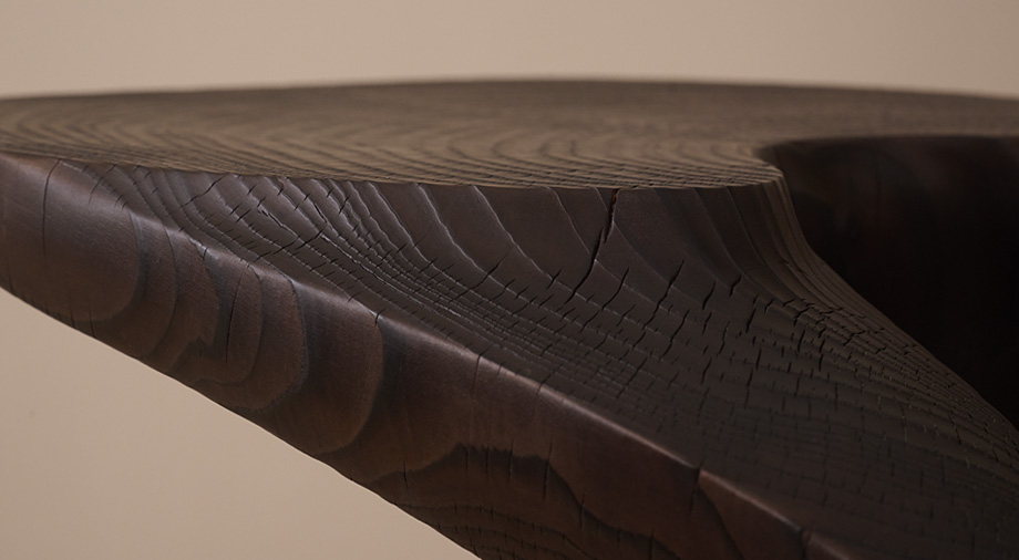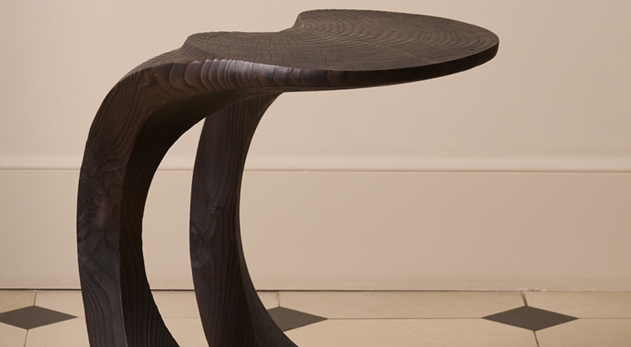 A side table entitled ” Kurtos.” Burnt cedar. One of a kind.